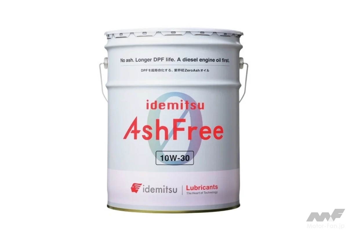 「idemitsu AshFree」は、ディーゼルトラックやバスに搭載される排ガス浄化処理装置DPF※1(Diesel Particulate Filter、ディーゼル微粒子捕集フィルター、以下「DPF」)の目詰まりの要因となる灰を出さないオイルとして、DPFの寿命延長によるメンテナンス費用の削減やDPF再生※2時間短縮による労務時間・燃料使用量の削減を実現する。本製品は出光興産の特約販売店を通じて販売される。