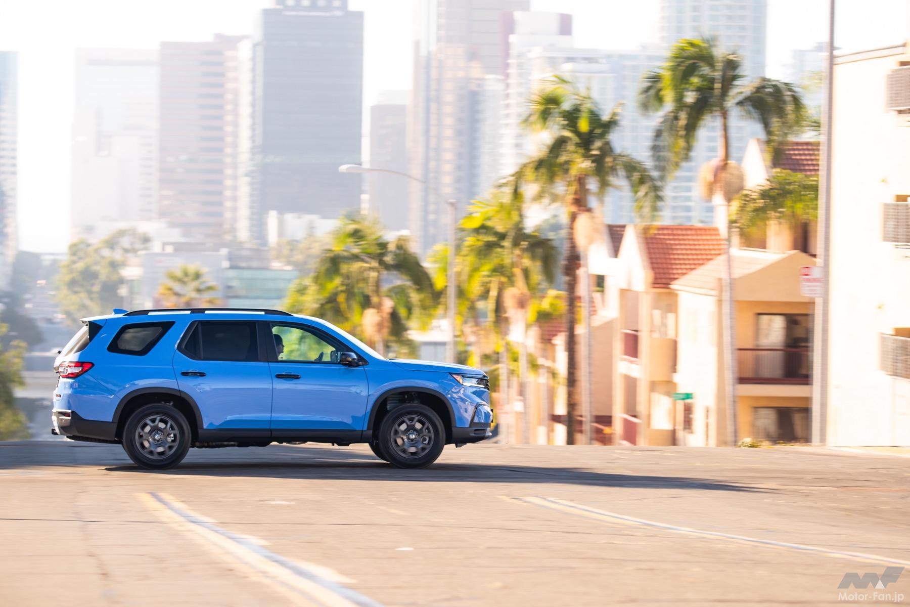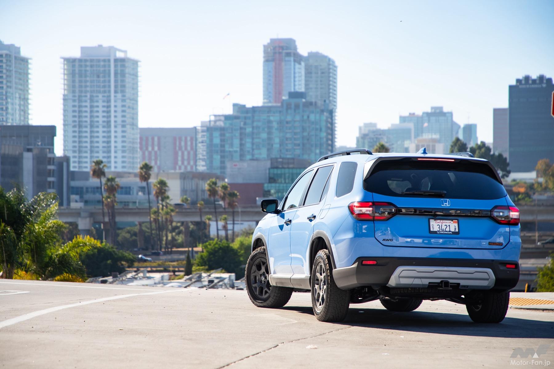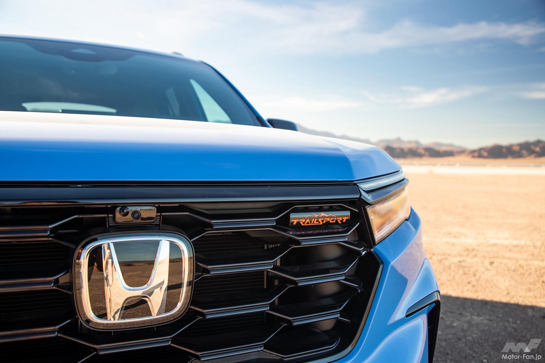 9インチのセンタータッチスクリーンも日本で販売されているホンダ車と同じインターフェースで、タブレット感覚の操作性を実現。Apple CarPlayはワイヤレス接続に対応している。マルチビューカメラにはTrailWatchと呼ばれる機能も備わり、ドライブシステムでトレイルモードを選択すると自動でマルチビューカメラ映像を表示。オフロードを走る際に直接目視するのが難しい車両周囲の状況を確認することができる。