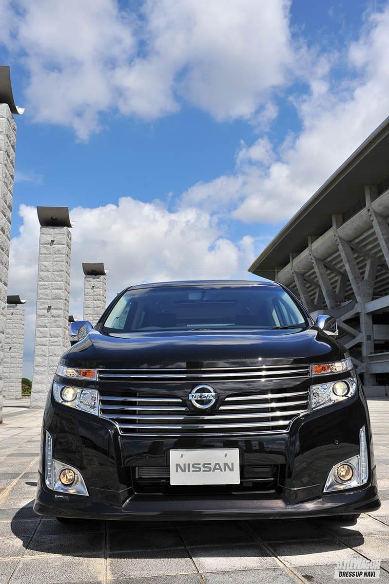 ロー&ワイドなプロポーションのエルグランド。ハイウェイスターは力強さと華やかさを兼ね備えた面構えだ。