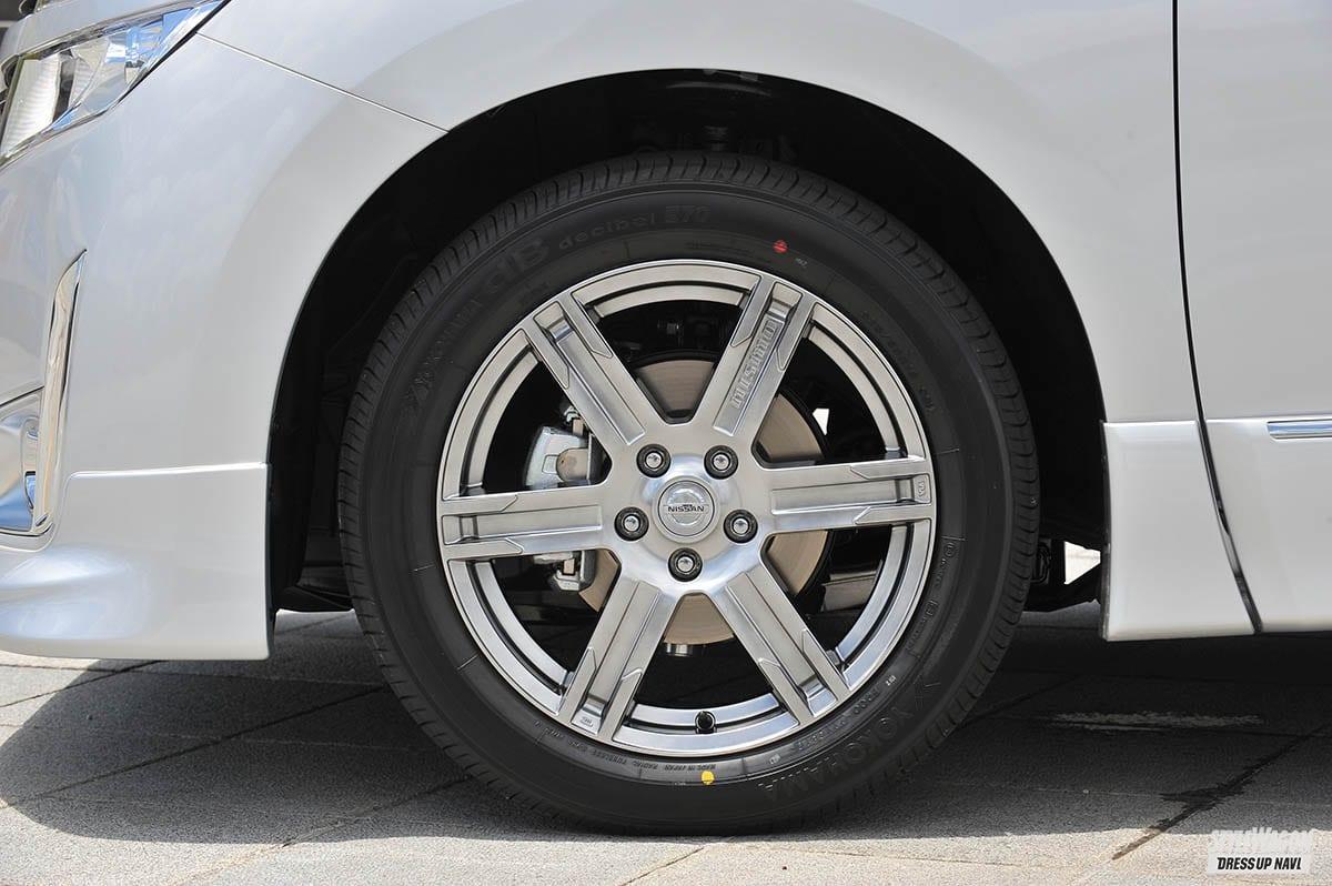 内外装ともに、より一層の高級感を演出する純正オプションパーツが取り揃えられている。写真のエルグランドが履くのはニスモの18インチホイールだ。