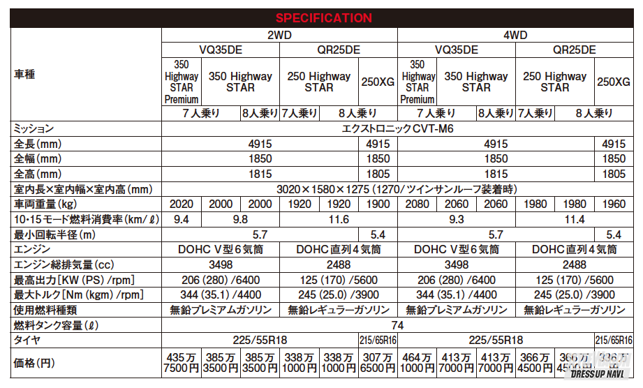 エンジンは専用チューニングを施された3.5ℓのVQ35DEと2.5ℓQR25DEの2本立て。
