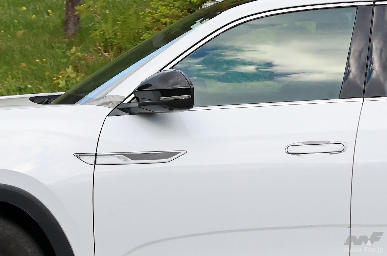 側面では、目立っていたフェンダーがシンプルに改良されており、現在のモデルではドアハンドルの下にキャラクターラインが、ドアハンドルの上に移動されている。またフェイクドアハンドルを備えており、人気が高まっているフラッシュマウントハンドルを採用する可能性があることを示唆している。