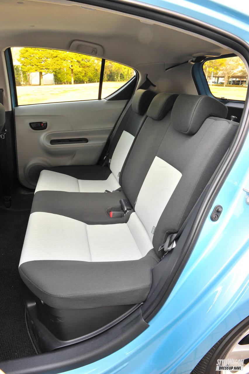 フロントシートのサイズを拡大しながらも、後席のヒザまわりスペースも広くなった。リアシートは6:4分割可倒式。小型化したバッテリーなどより、ラゲッジもコンパクトカーとしては十分な容量をもつ。