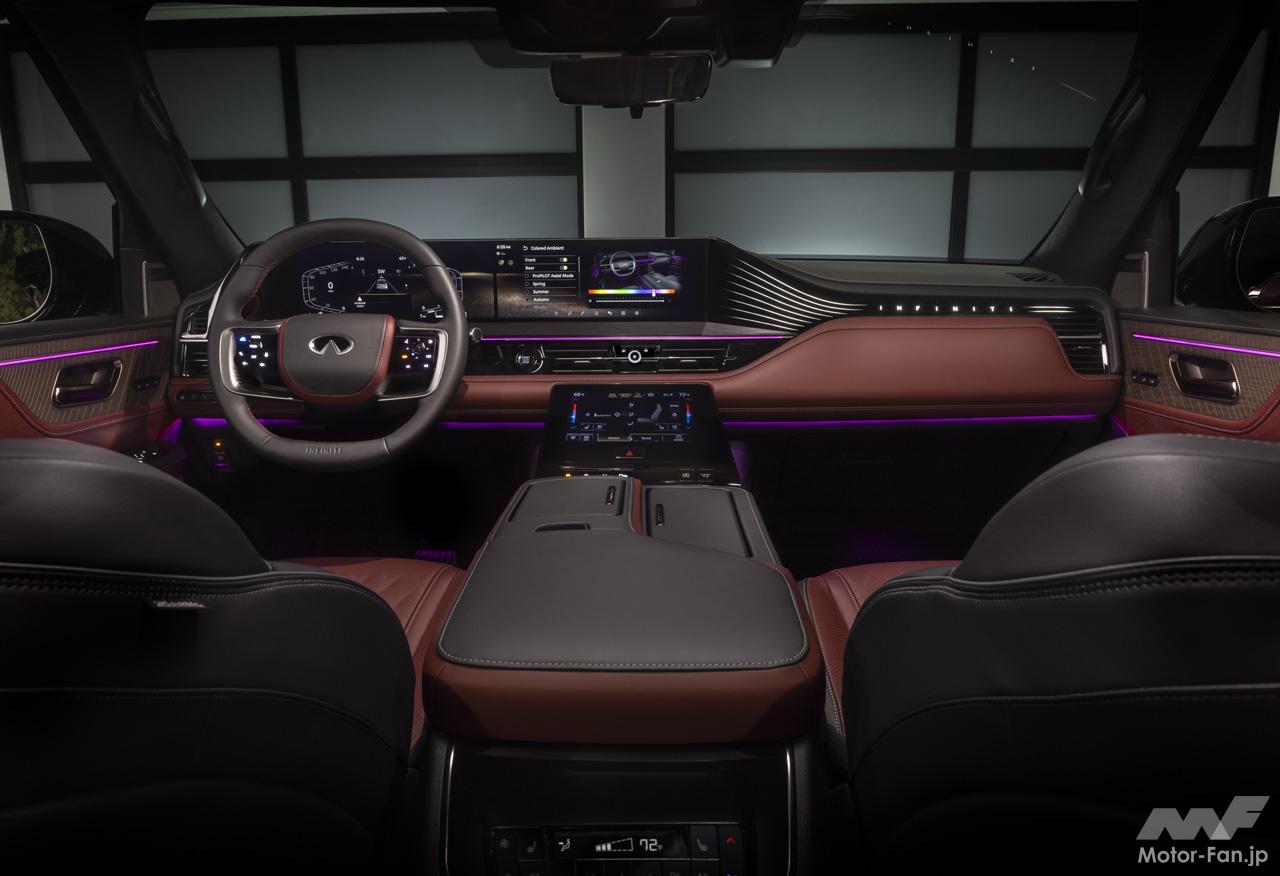 インフィニティの新型フラッグシップモデル「QX80」は、存在感ある洗練されたデザイン、最高クラスのホスピタリティを提供する室内空間、シームレスで直観的なテクノロジー、そして圧倒的なドライビング体験を提供する。