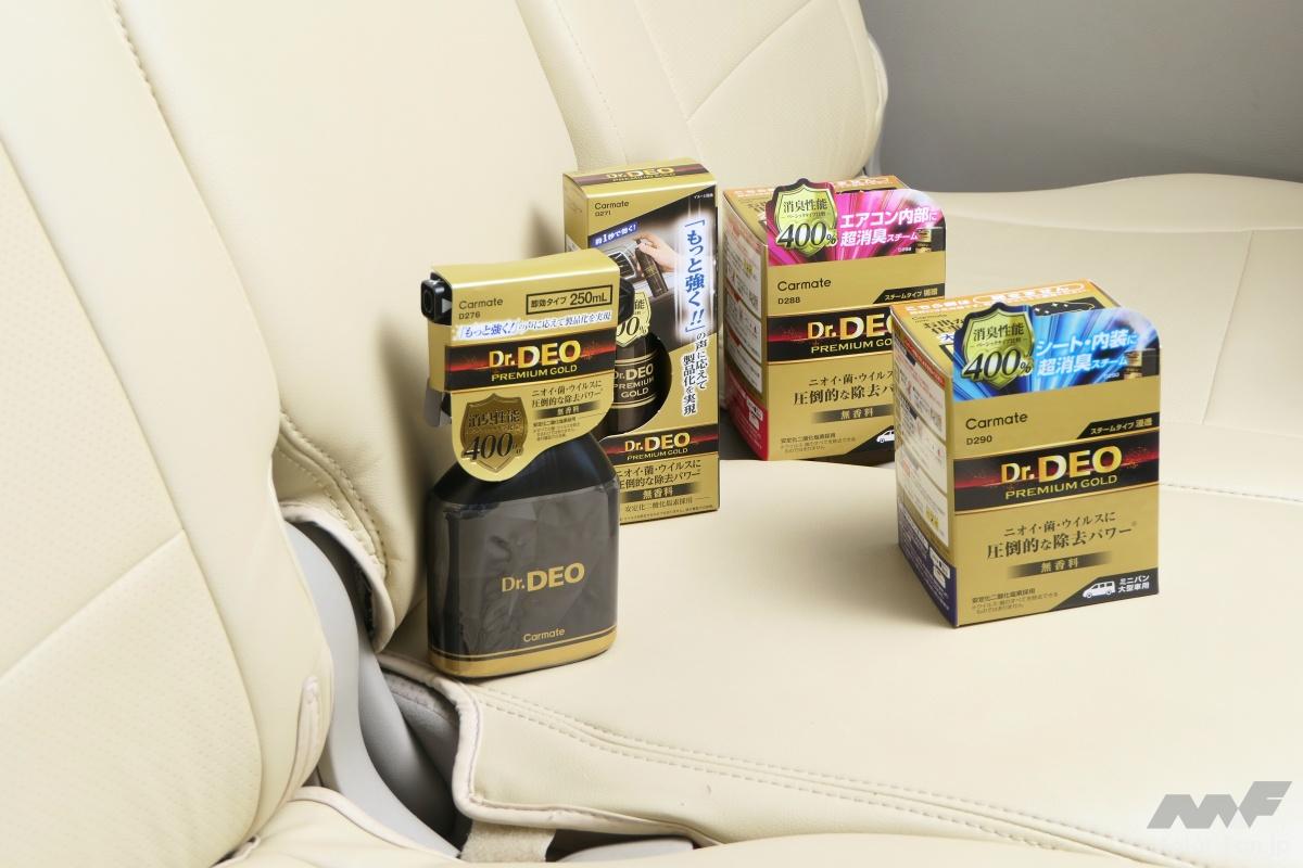 安定化二酸化塩素を採用するカーメイトのドクターデオは、気化した成分が車内に浮遊する悪臭分子や菌、ウイルスに付着することで強力に除去。香りでごまかさず、悪臭の原因を根本から絶つのが特徴で、第三者機関による試験でも、カビの発生やインフルエンザウイルスを効果的に除去することが証明されている。