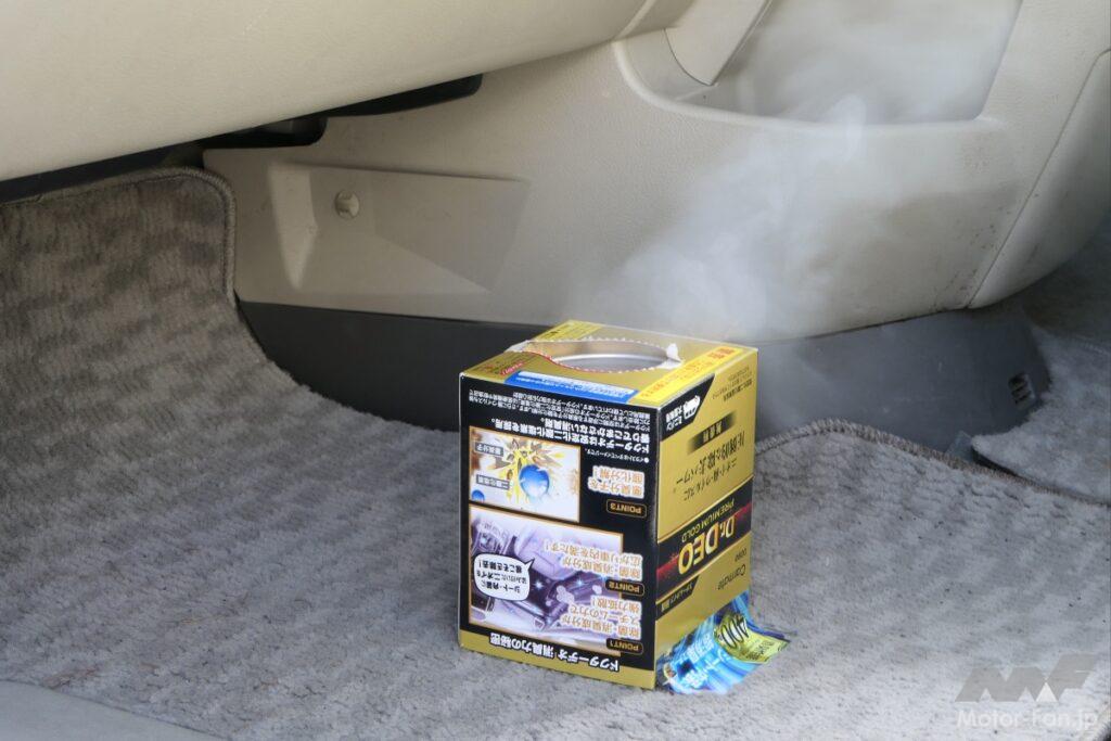 ふたつめの注目アイテムは臭い対策用グッズ。梅雨時期になると車内が不快なニオイが気になりがち。車内の湿度が高くなるため雑菌やウイルスも繁殖してしまうのだ。だからこそ、根本からニオイ対策をしてやるのが肝心。