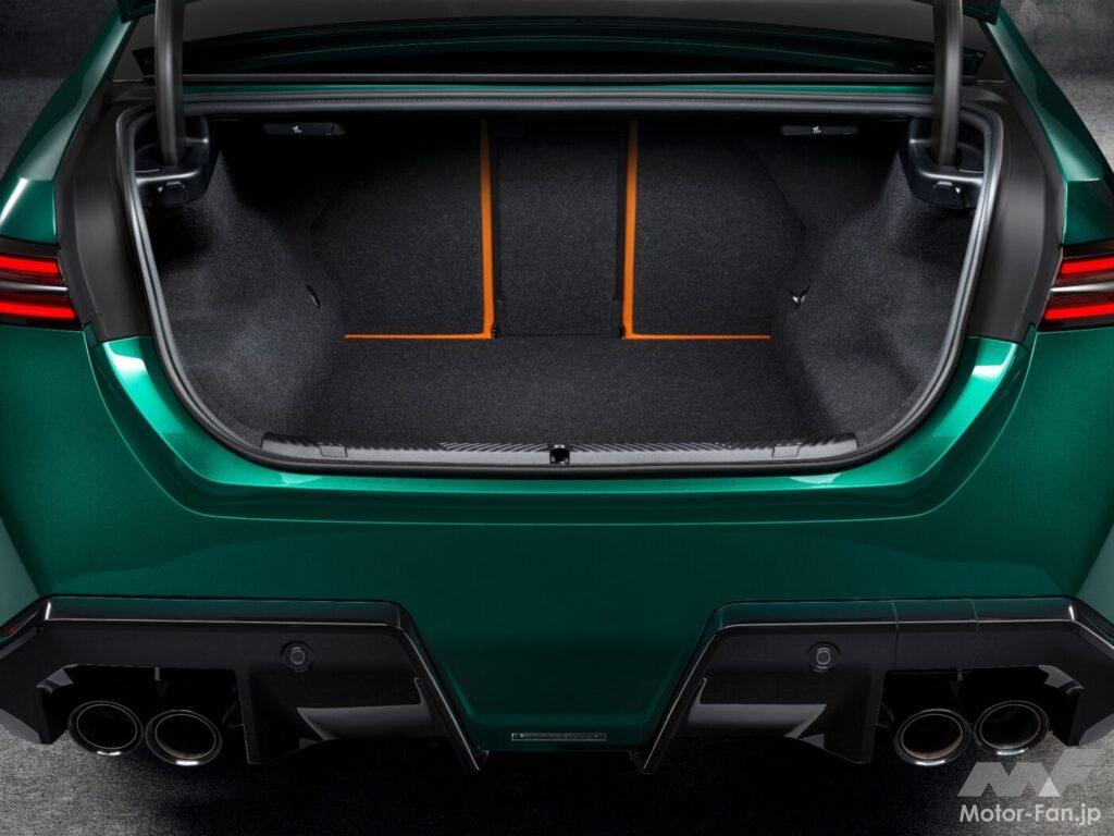 さらに、Cピラー周辺の専用サーフェシングはエンボス加工の“M5”のロゴが際立って運動性能を彷彿とさせる外観を作り上げており、一般の5シリーズ・セダンとの差別化が図られている。また、ボディカラー仕上げの面の割合が高いため、ダイナミックさがスタイリッシュに表現されたピュアな印象の外観となっている。