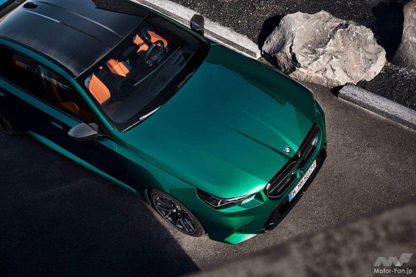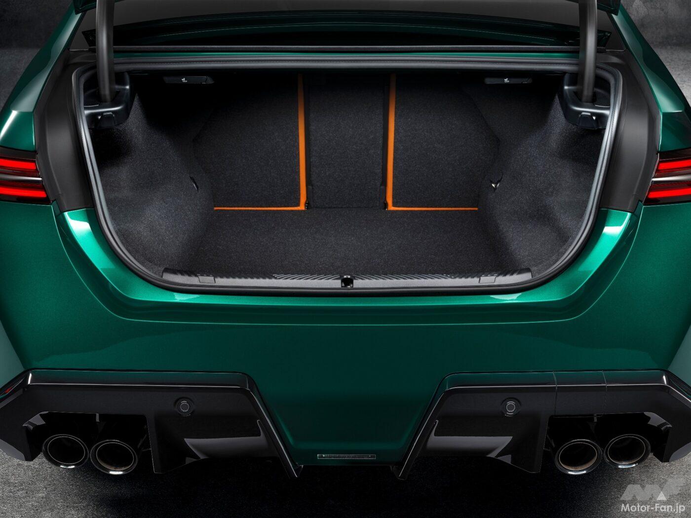 さらに、Cピラー周辺の専用サーフェシングはエンボス加工の“M5”のロゴが際立って運動性能を彷彿とさせる外観を作り上げており、一般の5シリーズ・セダンとの差別化が図られている。また、ボディカラー仕上げの面の割合が高いため、ダイナミックさがスタイリッシュに表現されたピュアな印象の外観となっている。
