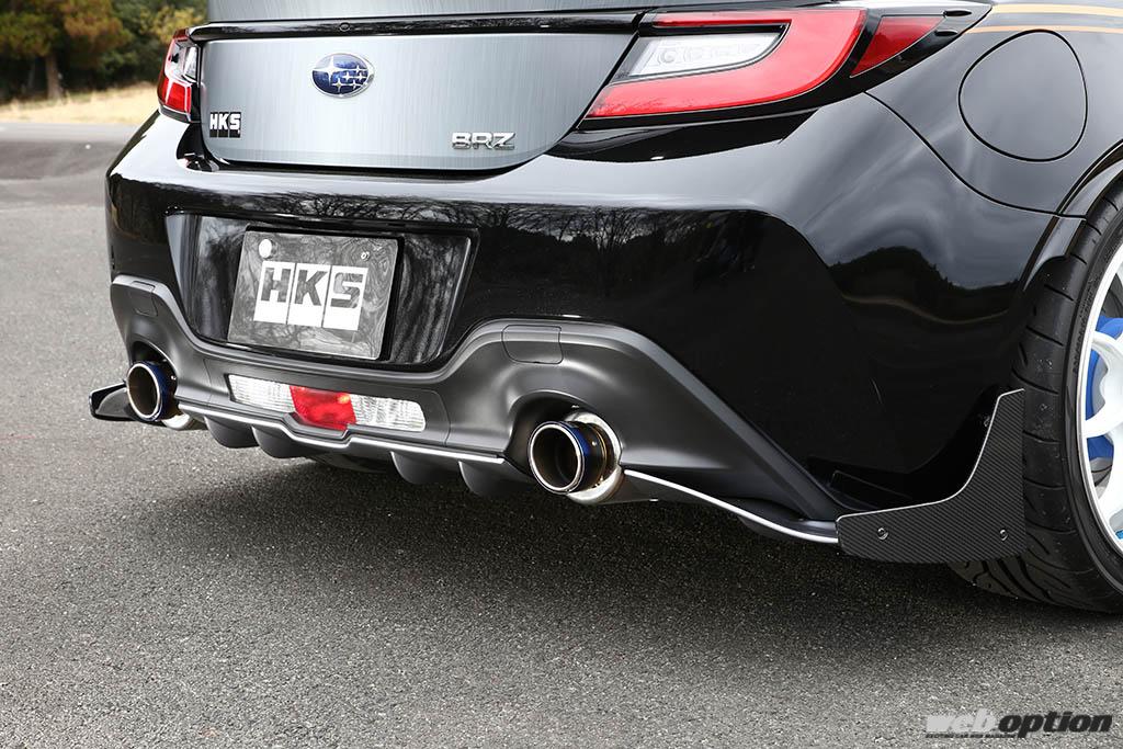 HKSがこれまでに手がけてきたタイムアタックマシンのノウハウを投入し、保安基準適合の枠組みの中でFRスポーツに相応しい空力を目指したボディキットタイプS(価格未定)。純正バンパーやサイドステップを活かしたアンダーディフューザータイプながら、ボトムラインを強調するディテールでワイドボディに匹敵する迫力を獲得している。