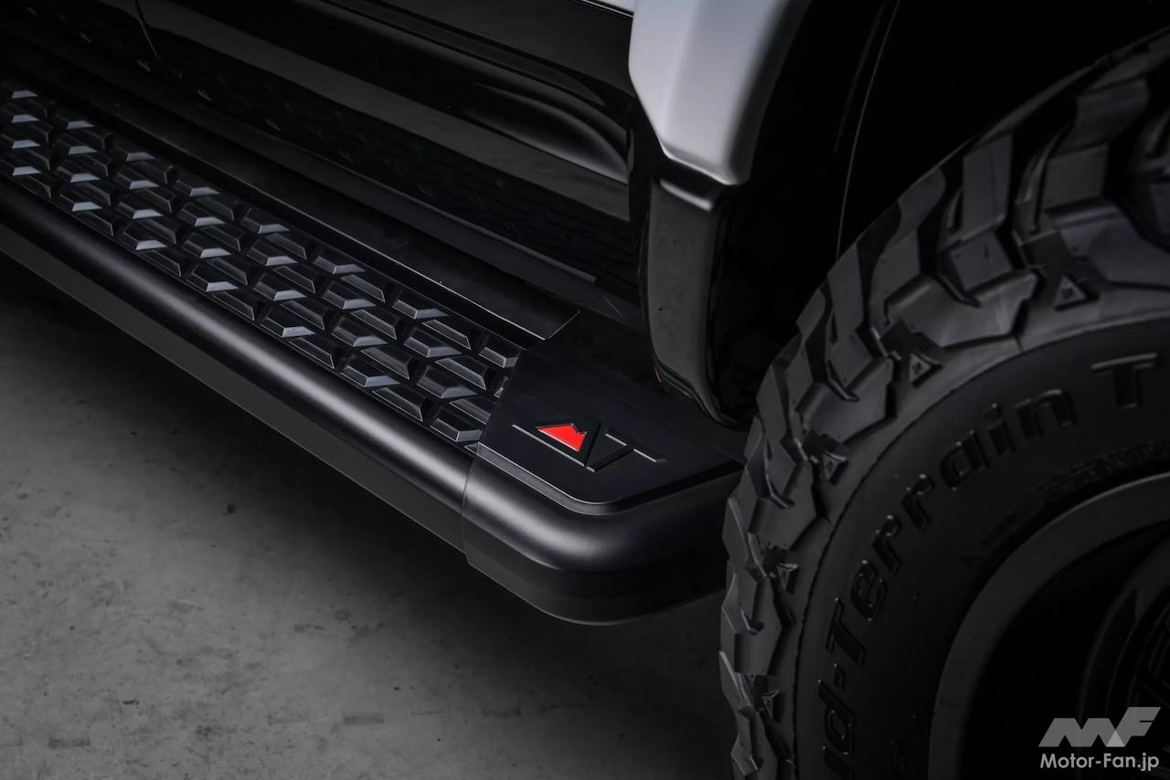最後に足回りの強化だが、サスペンションのアップグレードに2つのオプションを提供する。標準のエアサスペンションを15 mm(0.6 インチ)リフトアップするほか、ビルシュタインの10段階調整式コイルオーバーのオプションもあり、これにより地上高が 20 mm(0.8 インチ)増加するという。