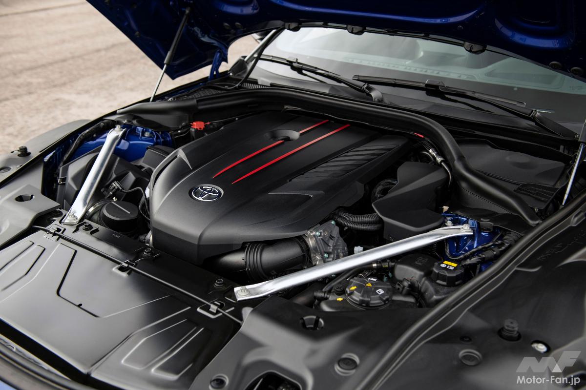 足回りには、ダブルジョイントタイプのマクファーソンストラット式(フロント)、独立マルチリンク式(リア)サスペンションを搭載。デュアル・エキゾースト・アウトレットなど、パフォーマンスに重点を置いた標準装備が全モデルに引き続き搭載されている。タイヤは、全モデルに高性能ミシュラン・パイロット・スーパースポーツタイヤを装備し、スープラの後輪駆動(FR)プラットフォームのグリップを最大限に引き出す。