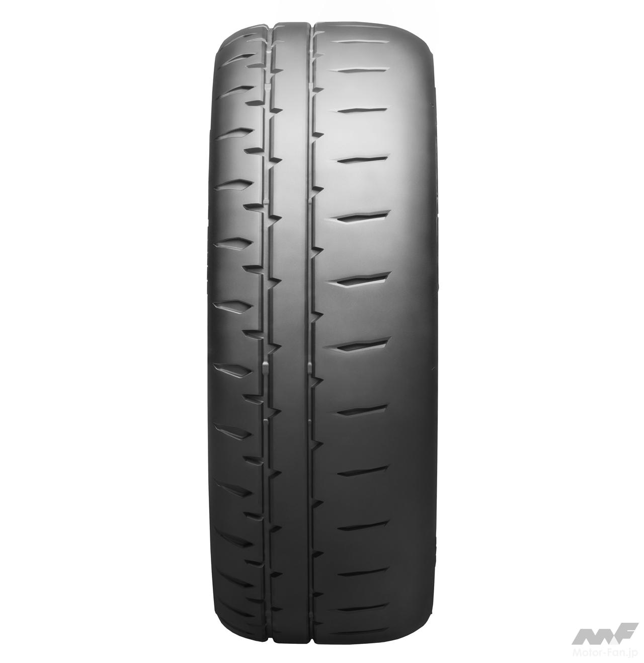 ブリヂストン独自のタイヤの接地面を可視化する計測技術「ULTIMAT EYE(アルティメット アイ)」を活用して最適な接地性を追求し、「ポテンザRE-10D」向けに専用設計した新パタンの採用と構造・形状の最適化を実施。また、ドライ性能とウエット性能をさらに高次元で両立する新コンパウンドの搭載により、サーキットでの様々な場面でのラップタイム短縮を実現したスポーツタイヤとなっている。