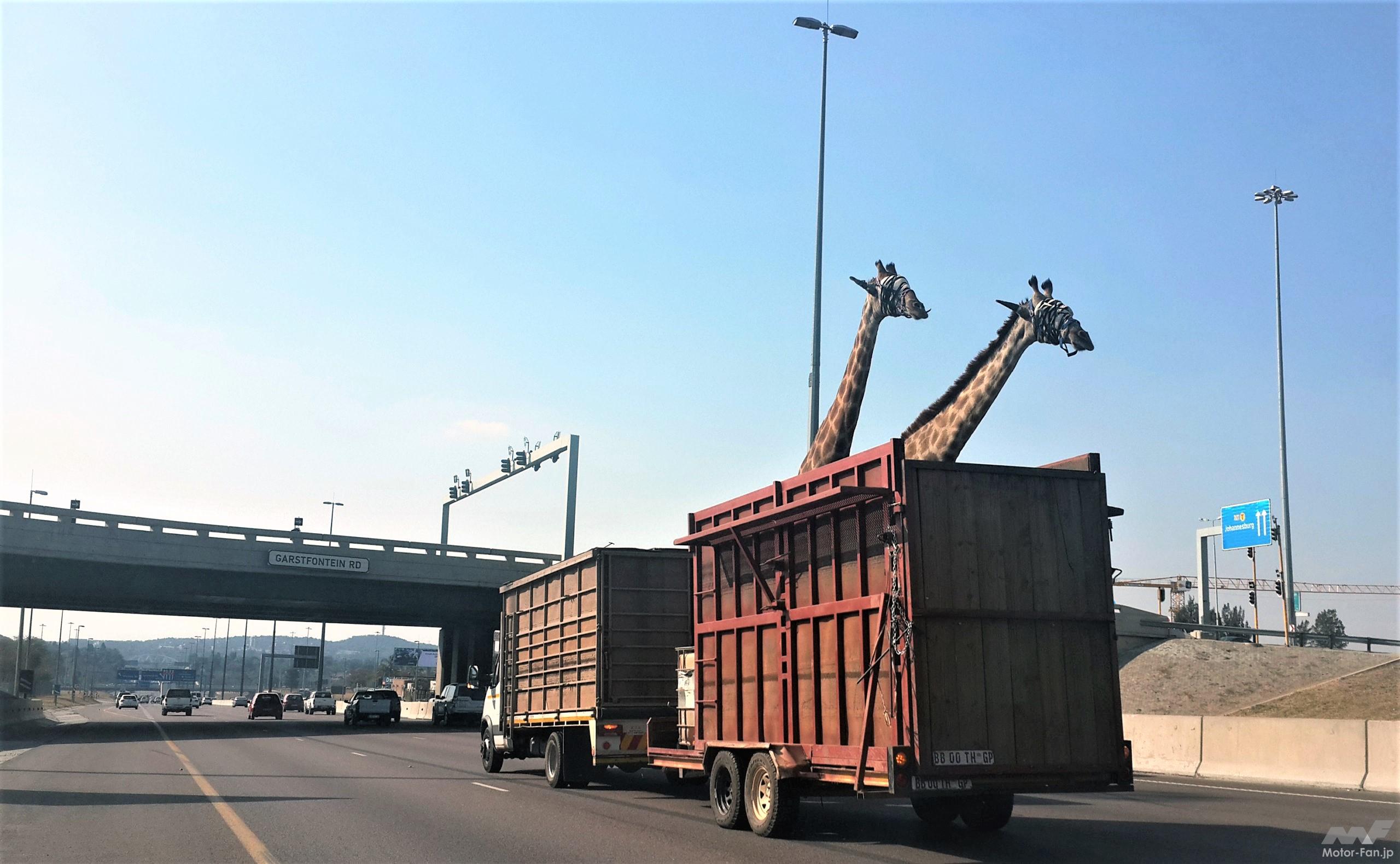 さらに問題となるのが、キリンのような大型動物です。キリンの中には4mを超えるものがいますが、日本では道路交通法で自動車の高さは3.8mまで、一部道路では4,1mまでと定められているため、そのままでは運ぶことが出来ません。また、道路交通法を守ると『動物取扱業者が遵守すべき動物の管理方法等の細目』に反してしまうこともあります。このような場合、床がギリギリまで低められた低床式トレーラーを使用し、キリンが床に座るか、首を楽に少し前に倒す姿勢になるよう、要するに“枕”が付いている特殊な加工が施されたコンテナを使用するそうです。
