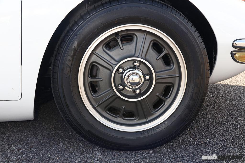 ホイールは2000GT定番のマグネシウムホイールのデザインをアルミ削り出しで完全復刻。タイヤサイズは185-65-15。ブレーキにはABSを装備して高い安全性を確保している点も見逃せない。オーナーからの要望に応じて、オプションで16インチホイールも用意されている。