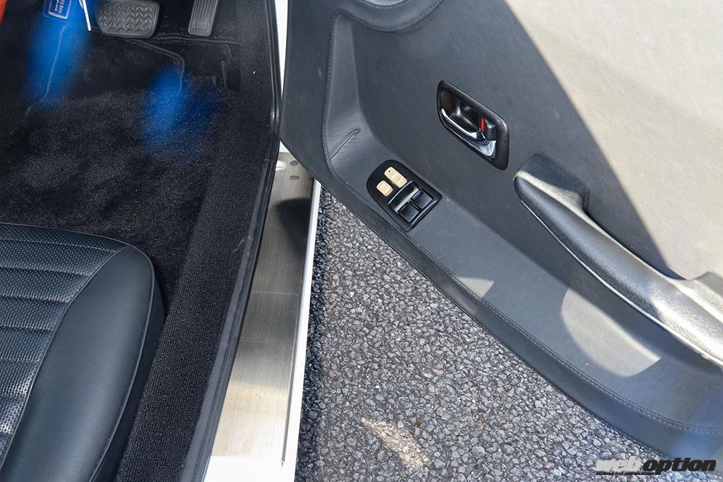 ドアパネルにはパワーウインドウのスイッチを違和感なくインストール。スカッフプレートも新たに製作され、インテリアの完成度がさらに増している。