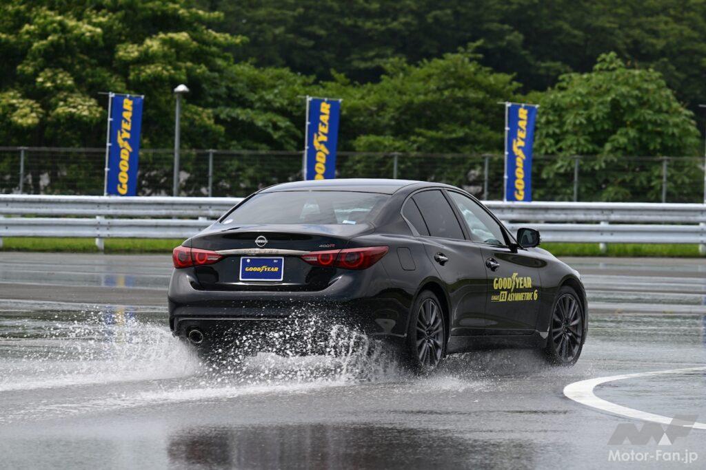 しかし、新旧乗り比べてみるとその差は大きかった。ウェット路面でのグリップ感は明らかに異なり、先代モデルでは旋回初期の舵角は大きく、手応えも軽めなのに対し、アシメトリック6は操舵初期から手応えがしっかりしていて、なおかつ小さな舵角で旋回を始める。センター付近の落ち着きもあることから、何のためらいもなく、ステアリングを切り込める。特に滑りやすいうっすらと水が乗っているときの安心感は大きく。明らかにゴムが違う感じだ。