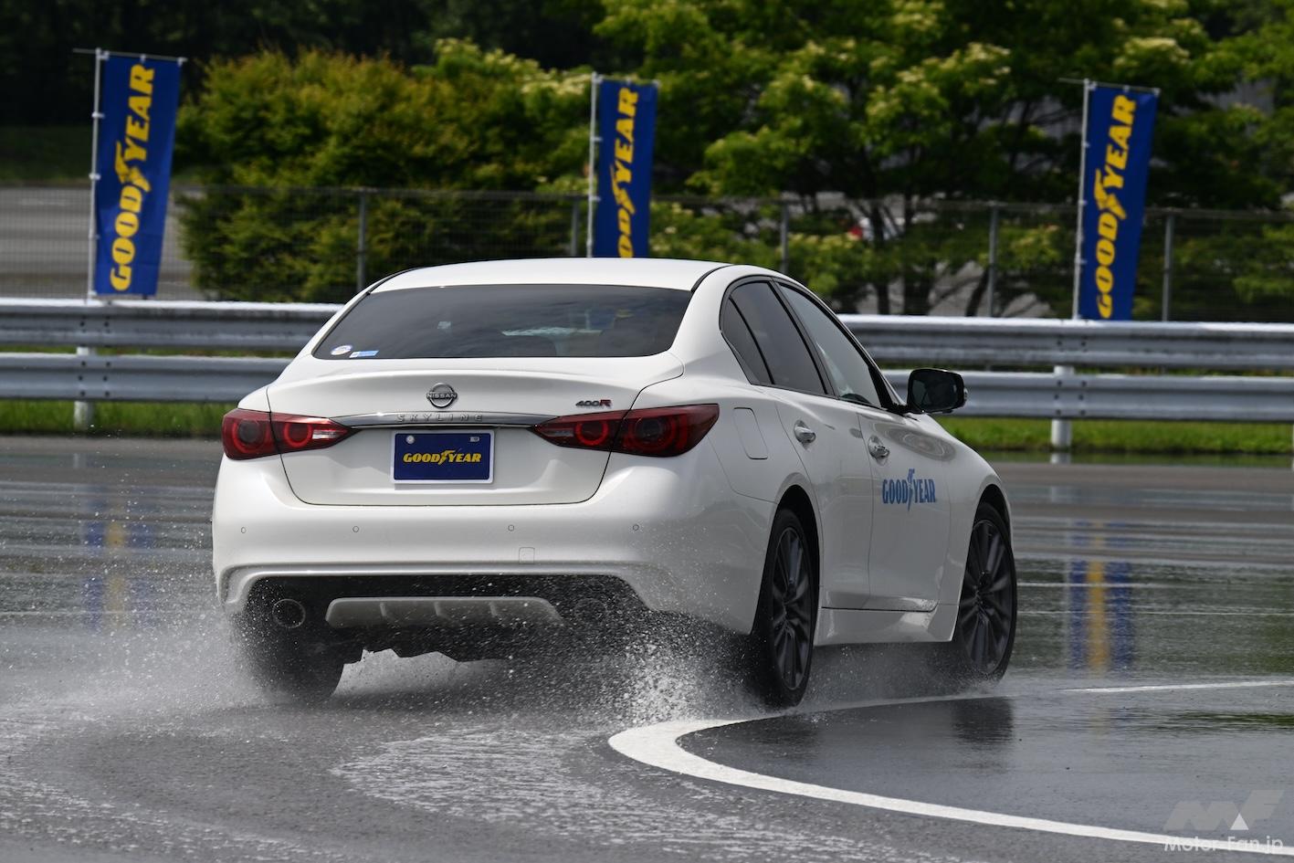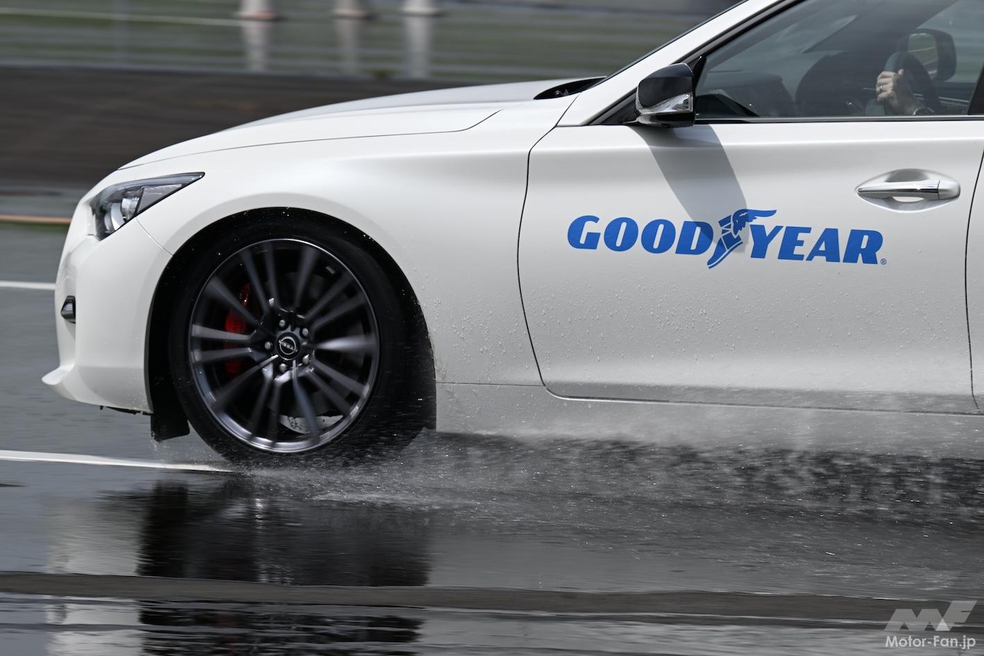 もっともタイヤは小さなピザ一枚分の接地面積と言われているなかで、機能を最大限発揮させることがすべて。接地がうまくいってこそゴムの性能が生きるわけで、グッドイヤーではあらゆるシーンで接地面積の適正化を行なうことに注力したドライコンタクトプラステクノロジーにこだわった。