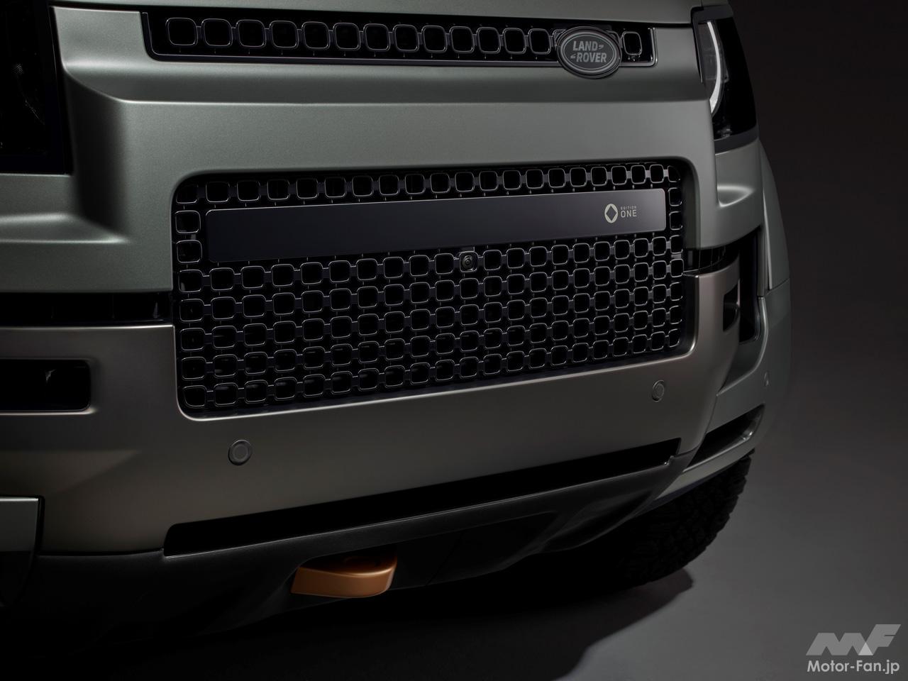 生産初年度のみの設定となる「エディション・ワン」は、専用装備として、新たなエクステリアカラーのフェローグリーン、カーキおよびエボニーのUltrafabrics PUおよびシームレスニットのインテリア、チョップドカーボンファイバーの新しいディテール、20インチ鍛造アロイホイール、オールテレインタイヤなどが与えられ、「ディフェンダー・オクタ」のタフさやアグジュアリーさが一層強調されている。