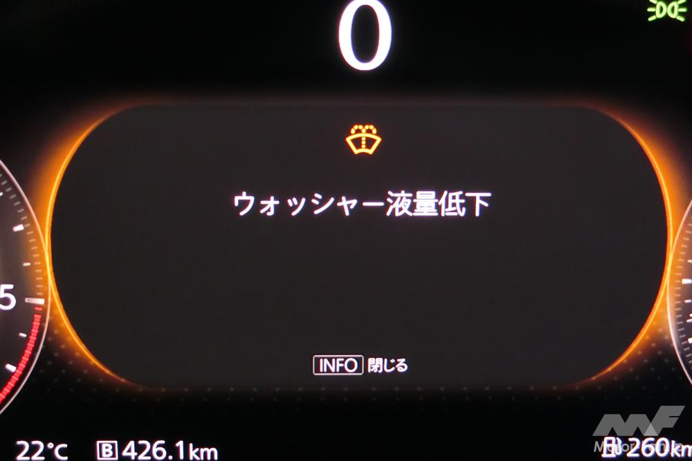 ほんとうは高いクルマだけにではなく、燃料残量警告同様、すべてのクルマにウォッシャー液残量警告灯をつけてくれるといいのだが。