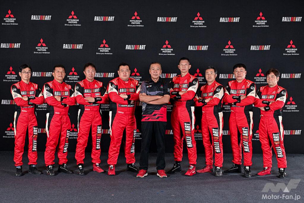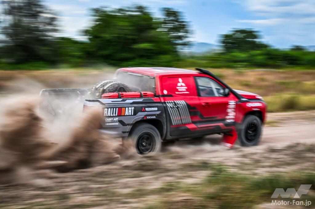 チーム三菱ラリーアートはタントスポーツ(タイ)が運営し、三菱自動車からはダカールラリーで2連覇した実績をもつ増岡浩が総監督として参画するほか、開発部門のエンジニアが参戦車両の開発を行なうとともに、競技期間中はチームに帯同してテクニカルサポートを行なう。ドライバー/コドライバーは、2022年大会で総合優勝を果たしたチャヤポン・ヨーター(タイ)/ピーラポン・ソムバットウォン(タイ)、2023年大会で日本人ペア最上位の8位となった田口勝彦/保井隆宏を引き続き起用。加えて経験豊富で三菱車を熟知するサクチャイ・ハーントラクーン(タイ)/ジュンポン・ドゥアンティップ(タイ)、さらに三菱自動車開発部門のテストドライバーである小出一登、そのコドライバーにはAXCRで入賞経験のある千葉栄二を起用し、新型トライトンのT1仕様(改造クロスカントリー車両)で王座奪還に挑む。