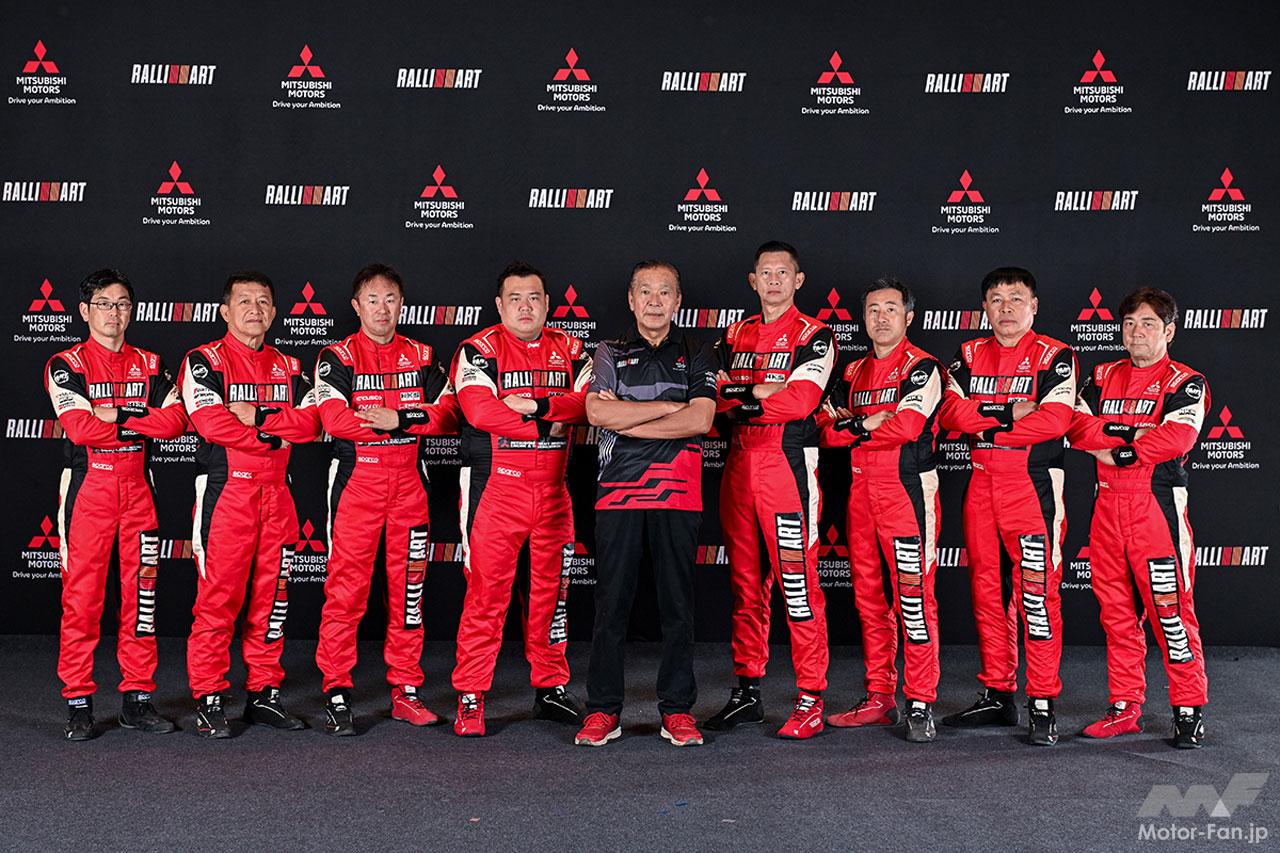 チーム三菱ラリーアートはタントスポーツ(タイ)が運営し、三菱自動車からはダカールラリーで2連覇した実績をもつ増岡浩が総監督として参画するほか、開発部門のエンジニアが参戦車両の開発を行なうとともに、競技期間中はチームに帯同してテクニカルサポートを行なう。ドライバー/コドライバーは、2022年大会で総合優勝を果たしたチャヤポン・ヨーター(タイ)/ピーラポン・ソムバットウォン(タイ)、2023年大会で日本人ペア最上位の8位となった田口勝彦/保井隆宏を引き続き起用。加えて経験豊富で三菱車を熟知するサクチャイ・ハーントラクーン(タイ)/ジュンポン・ドゥアンティップ(タイ)、さらに三菱自動車開発部門のテストドライバーである小出一登、そのコドライバーにはAXCRで入賞経験のある千葉栄二を起用し、新型トライトンのT1仕様(改造クロスカントリー車両)で王座奪還に挑む。