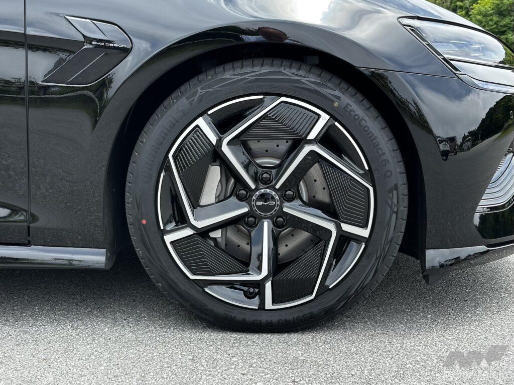 BYD SEAL AWD 全長×全幅×全高:4800mm×1875mm×1460mm ホイールベース:2920mm 車両重量:2230kg サスペンション:Fダブルウィッシュボーン式/Rマルチリンク式 リヤモーター TZ200XYC型交流同期モーター 最高出力:230kW(312ps) 最大トルク:360Nm フロントモーター YS210XYA型かご形三相誘導モーター 最高出力:160kW(217ps) 最大トルク:310Nm バッテリー リン酸鉄リチウムイオン電池 総電圧:550V 総電力量:82.56kWh WLTC交流電力量消費率:165Wh/km 一充電走行距離575km 車両価格:605万円