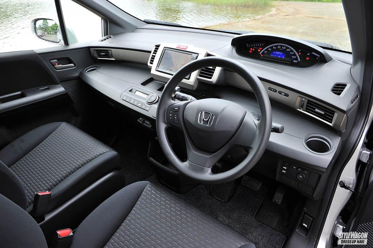 エクステリアはフリードに比べ、独自のキャラクター性が与えられている。フロントまわりは専用のグリル&バンパーが与えられてグッと押し出し感の強い表情に。そんなフロントビューよりもさらに個性的なのがリアクォーターまわりで、クォーターウインドウはなくボディ同色のパネルがあてがわれている。