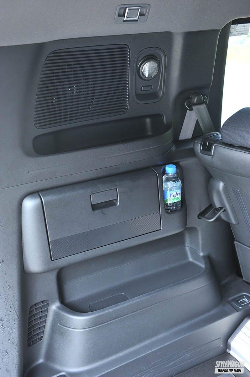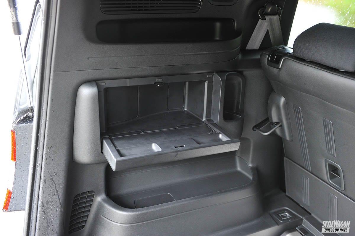 カーゴルームをより機能的に利用できるよう、サイドにもいろいろなアイデアが。ビルトインテーブルやカーゴスポットライトはGジャストセレクション以上のタイプに標準装備。