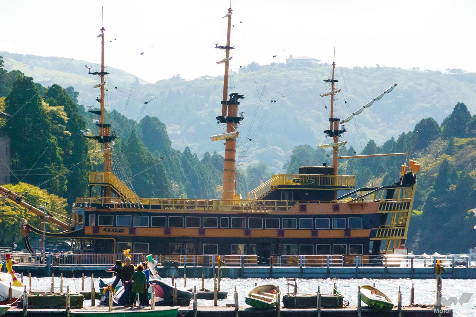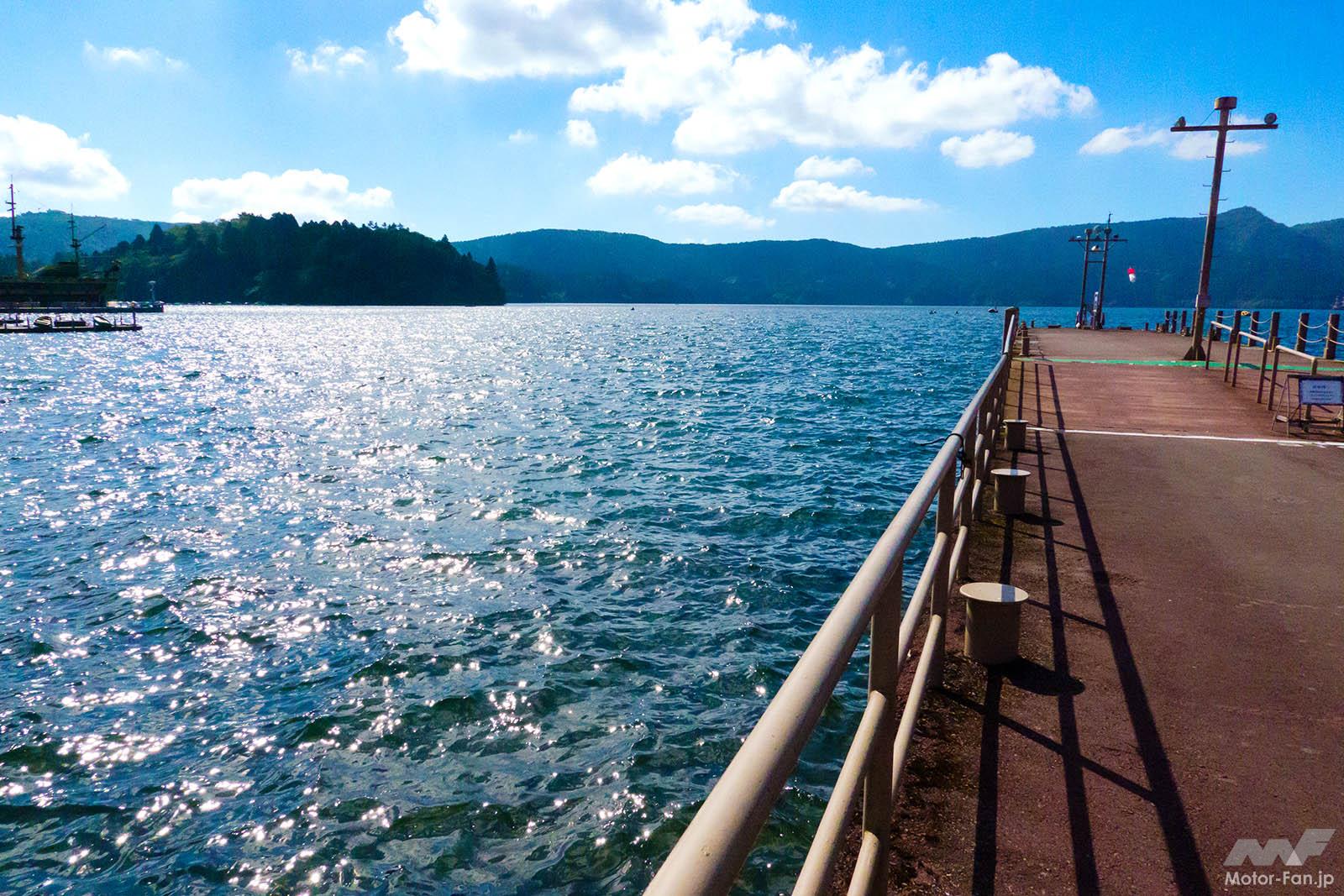 長いくねくね坂を上りきれば、そこは芦ノ湖、箱根の心臓部だ。箱根神社の鳥居が青空に映え、観光客のクルマが詰めかけている。好天に誘われ、バイク乗りも集まっていた。