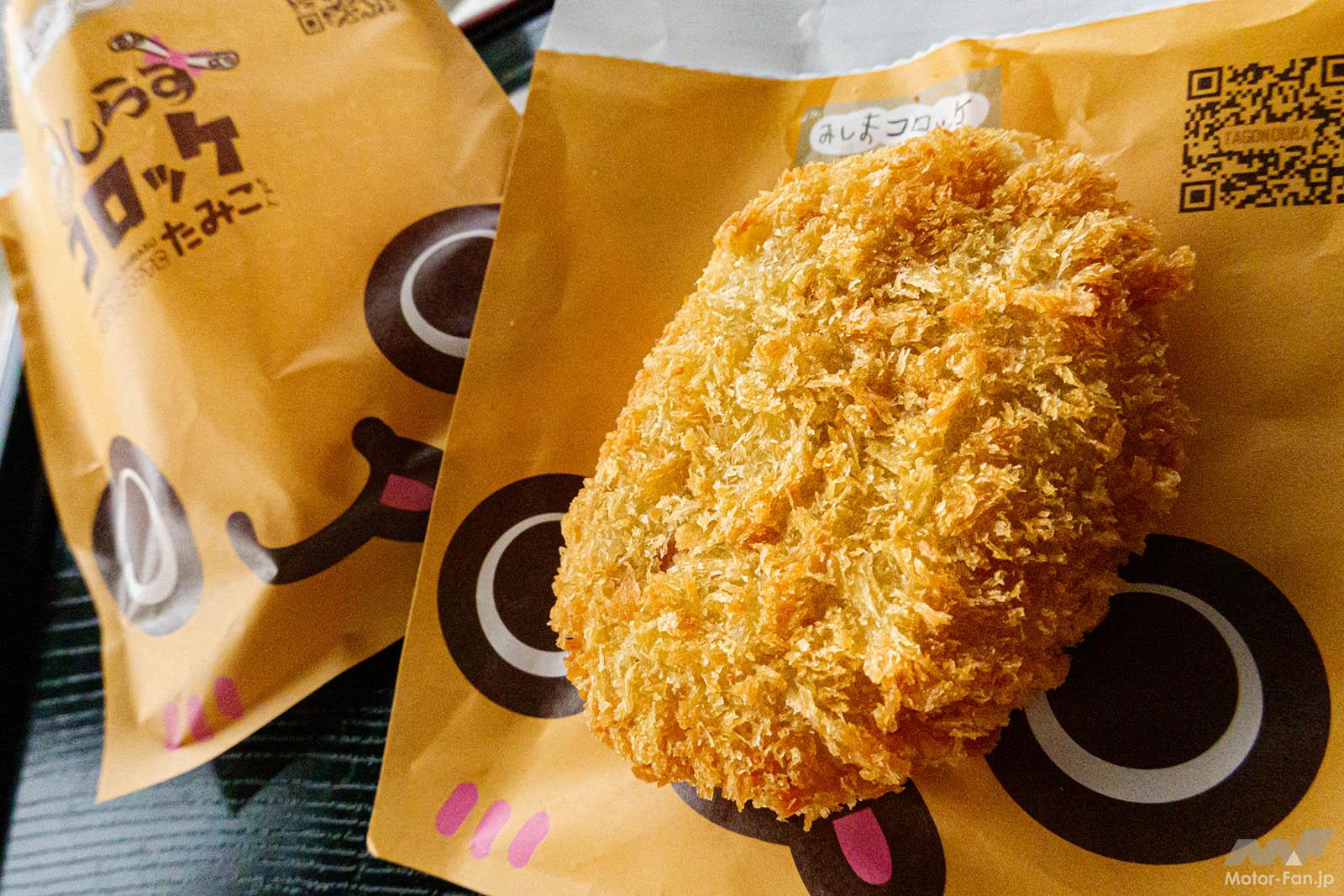 田子の浦のコロッケは、普通のコロッケとは一味ちがう。このあたりの2つのご当地ブランド、田子の浦しらすと三島馬鈴薯が合体した驚異のダブルご当地コロッケだ。その名は「たみこちゃん」。田子の浦しらすの「た」、三島馬鈴薯の「み」、コロッケの「こ」から命名されている。