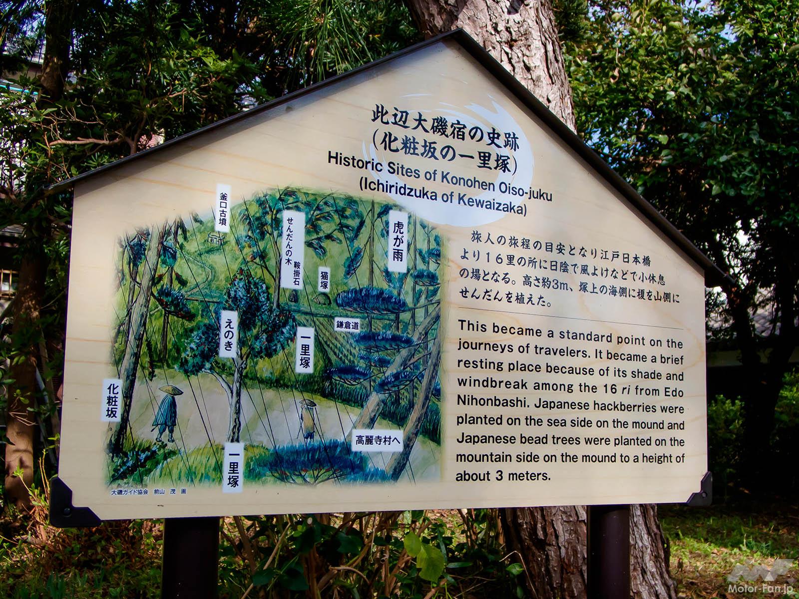 平塚を出発してすぐ大磯の化粧坂(けわいざか)に立ち寄った。安藤広重が描いたことで知られる東海道の名所だが、今では観光用の看板がいくつか立っているだけのわびしい松並木にすぎない。景観保全を担ってきたNPOが2年ばかり前に解散してからは手入れもままならず、やや荒んで感じられる。