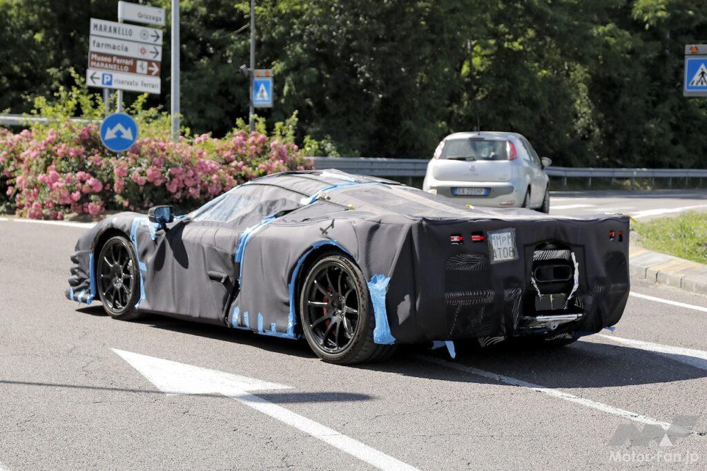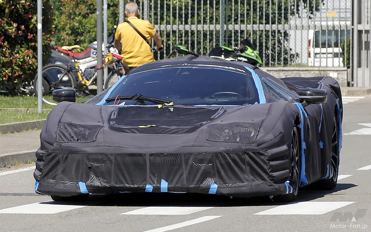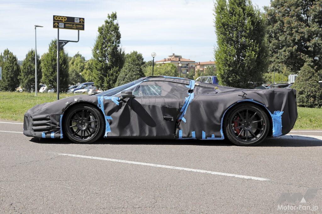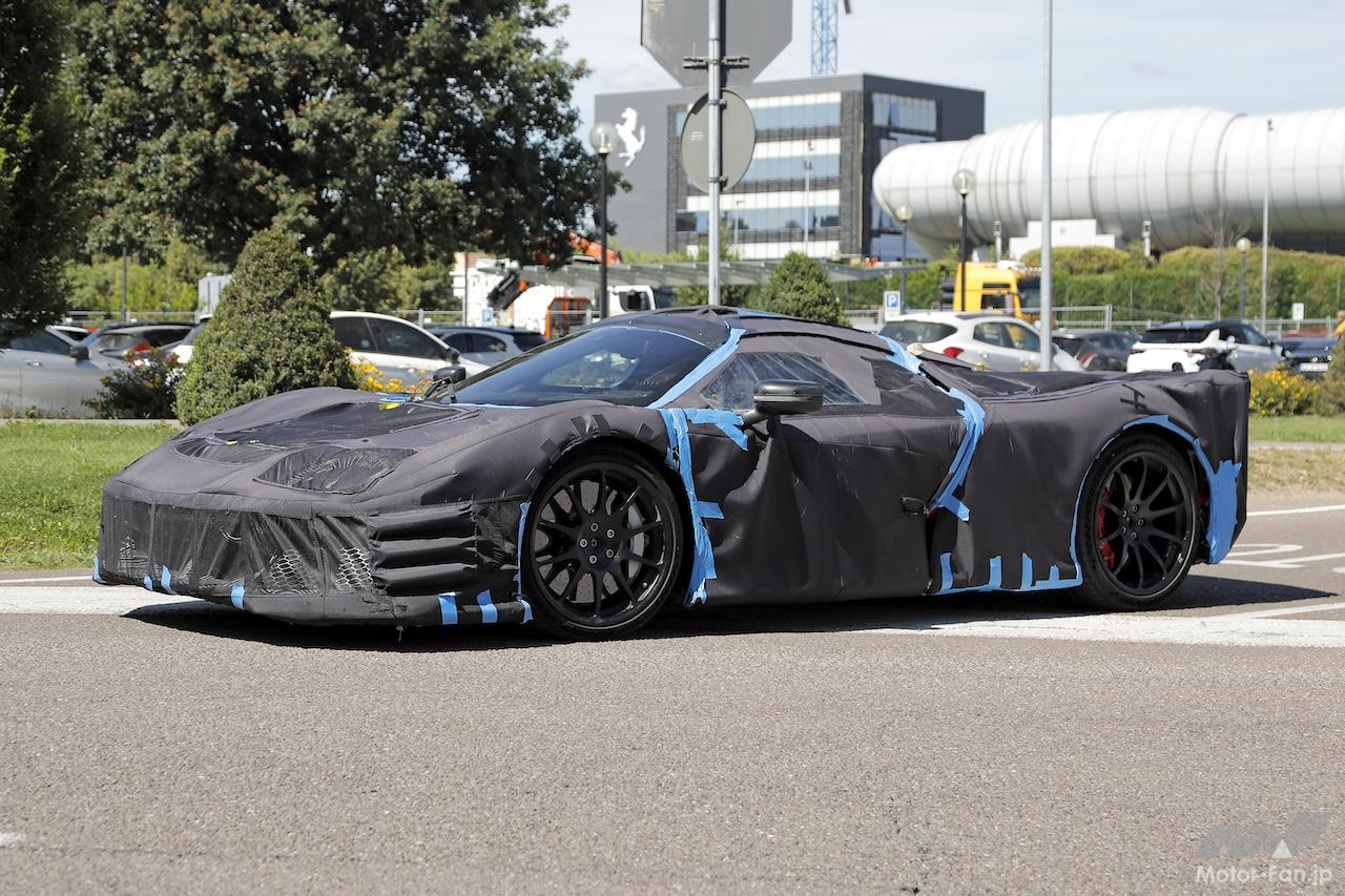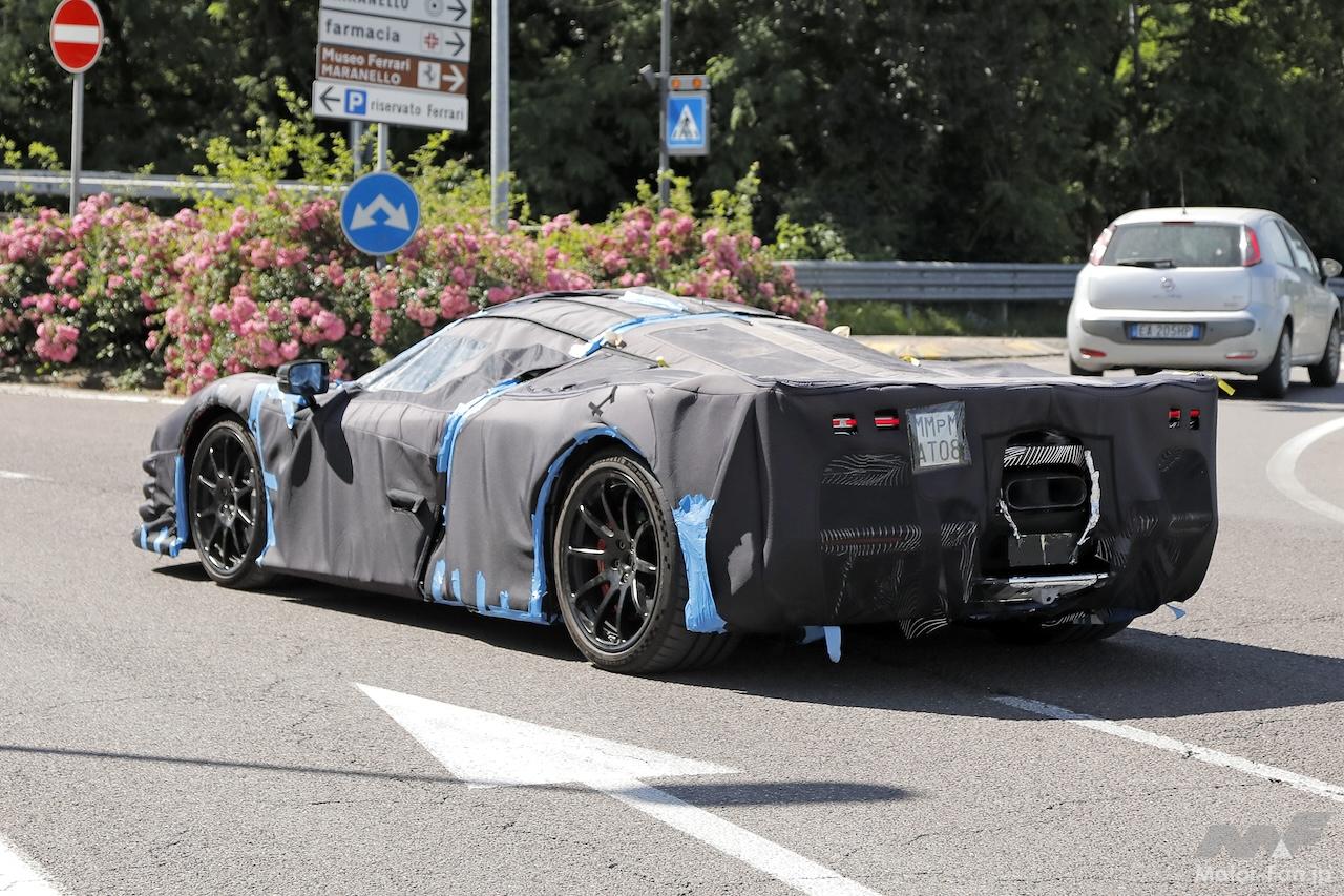 最新プロトタイプから見られる、「通常の」フェラーリとのさらなる差別化要因はエアロの量だ。これまでのプロトタイプからも、巨大なリアウィング、ミッドマウントエンジンに空気を送るための側面の通気口、F5を彷彿とさせるボンネットスクープを確認することができた。またカメラマンによると、ハイパーカーは実物を見ると非常に低くフラットな形状で、上向きに開くドアが特徴という。