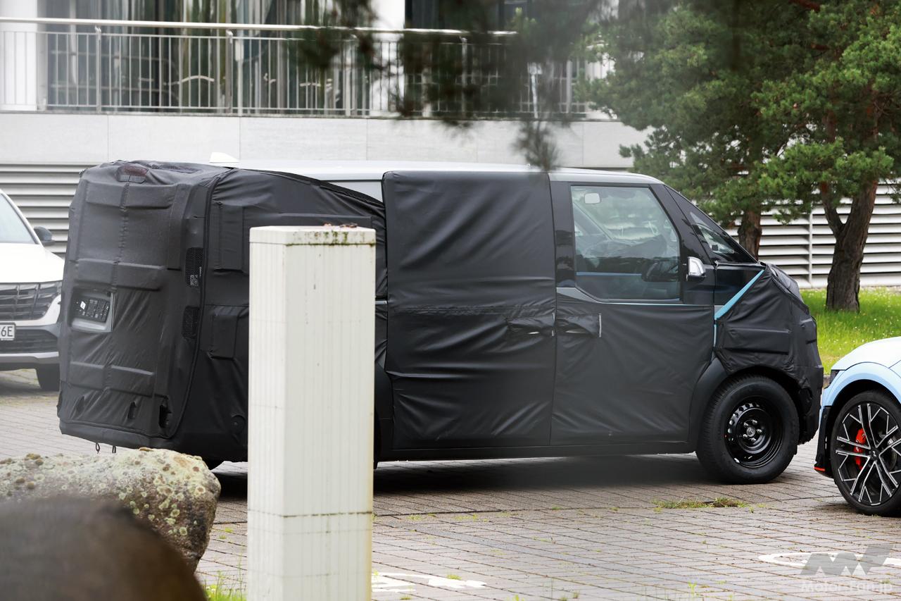 フォルクスワーゲン(以下VW) ID.Buzzとヒョンデ ステーリアを伴ってあらわれた謎のプロトタイプカーは、フルカモフラージュされてはいるが、どう見ても箱型のスタイリングは何の変哲もない商用バンのように見える。しかし、覆われていないサイドウィンドウをよく見ると、実はこれがPV5であり、最終生産ボディを装着している可能性が高いことがわかるのだ。