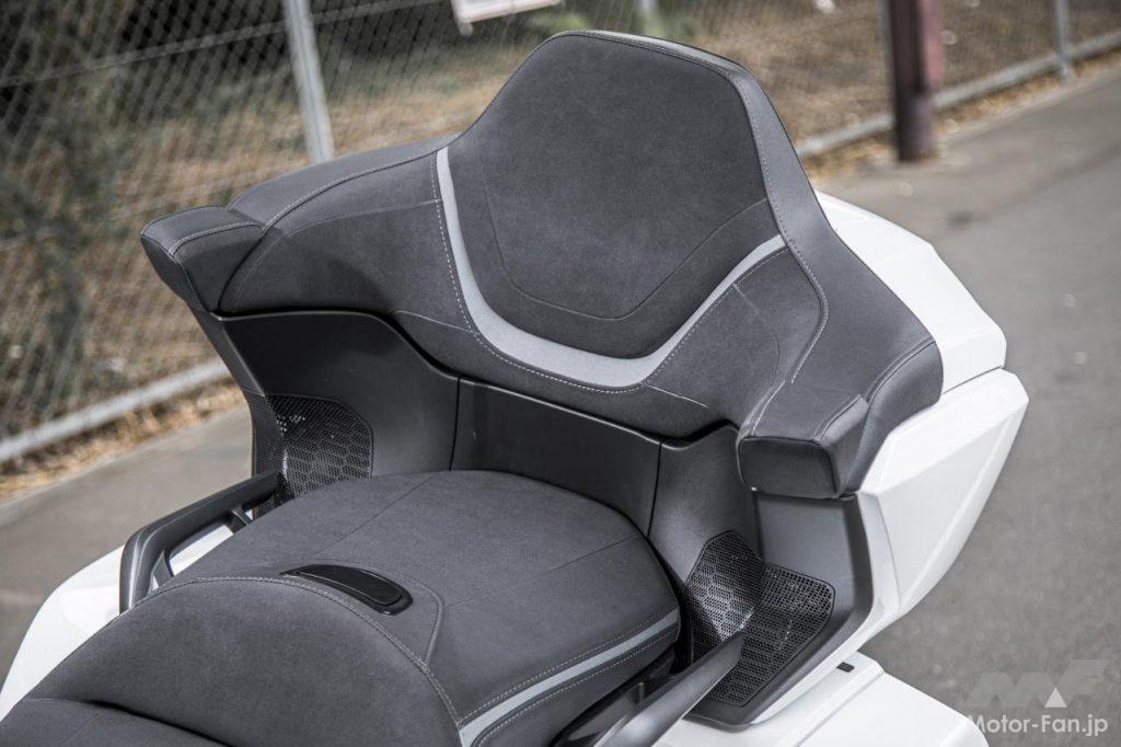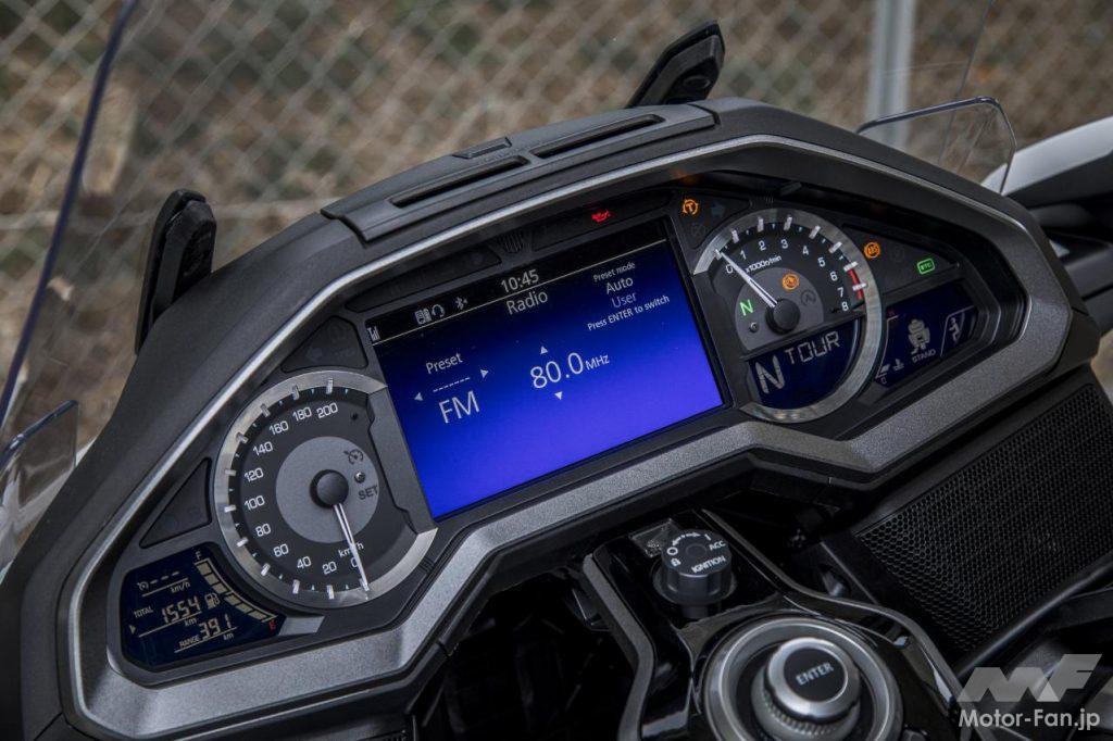 フロントのカウル周辺、ハンドルまわりはボリューム感たっぷりの堂々たるデザインだ。ホンダスマートキーシステムを採用。ステアリングロックやリヤトランクの開閉もスイッチ操作でOK。