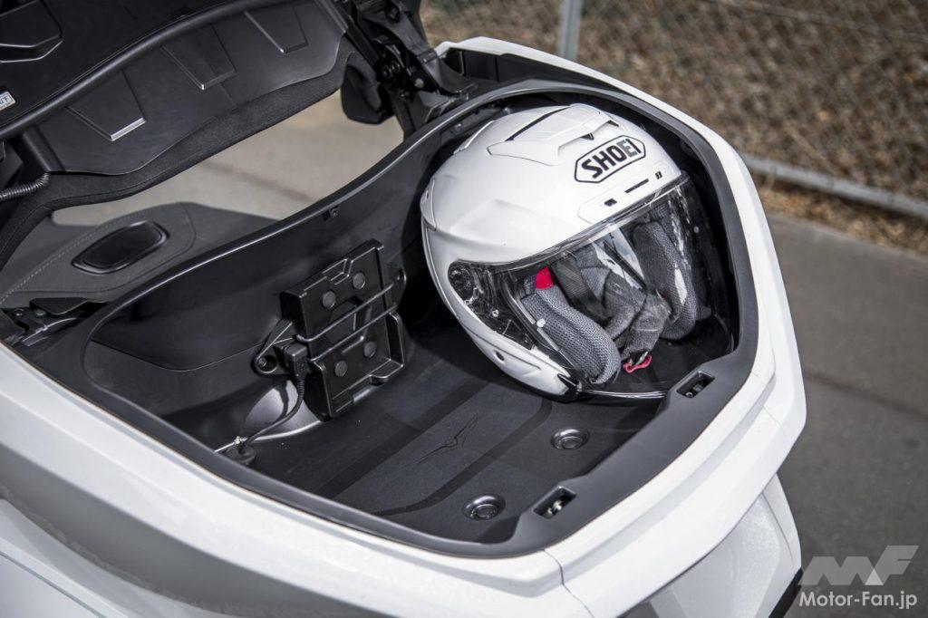 ご覧の通り、二人分のヘルメットが余裕で収納できる。もちろんセキュリティも確保されている。