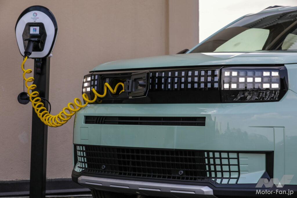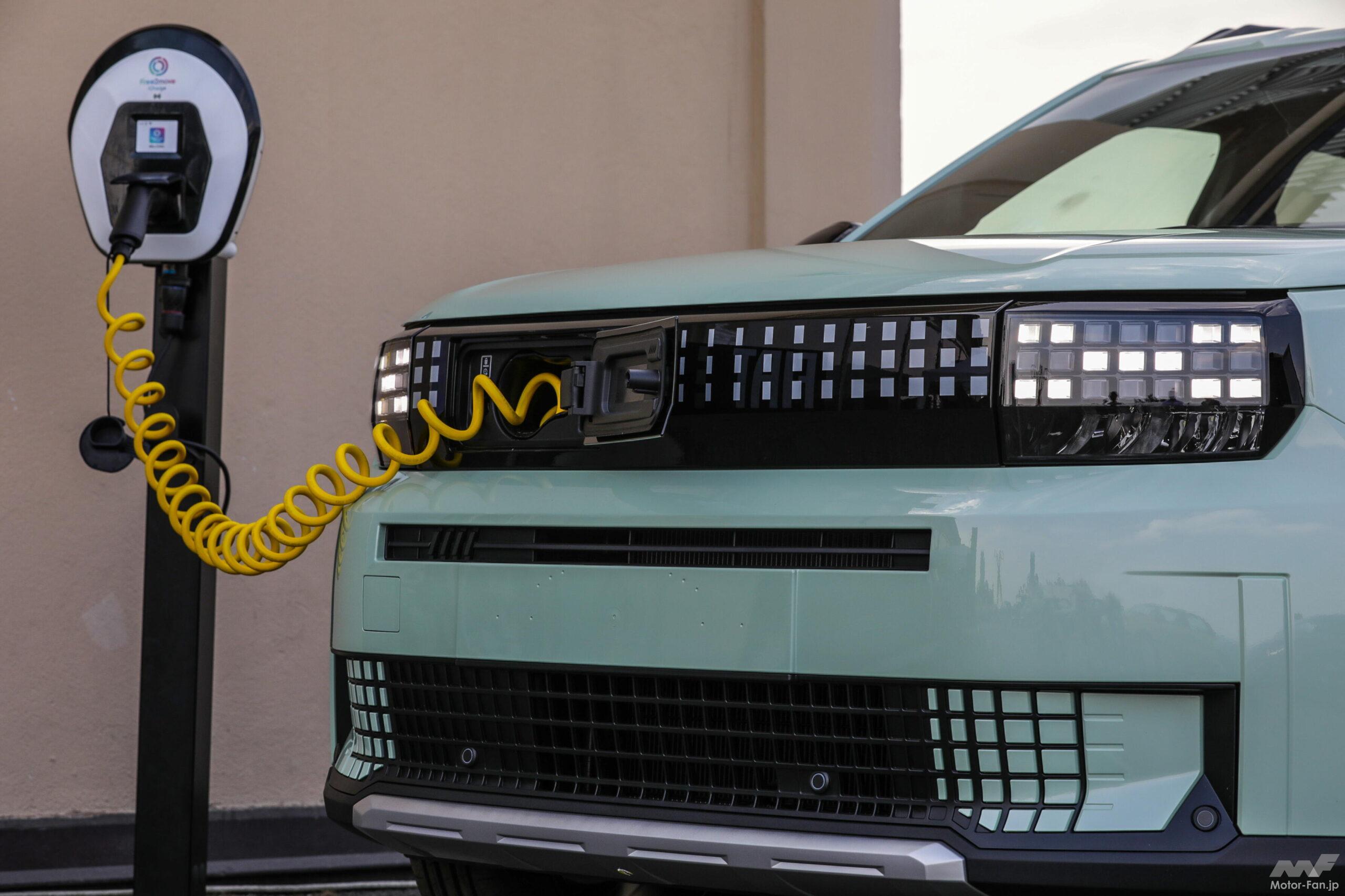 グランデ・パンダには、電動バージョンとハイブリッドバージョンの両方が用意される。44kWhバッテリーと83kWの電動モーターを搭載した電動バージョンは、WLTP複合サイクルで航続距離は320km以上という。また、充電ケーブルをスパイラル状に収納する画期的なシステムを備え、充電がより簡単かつ整然と行なえるという。