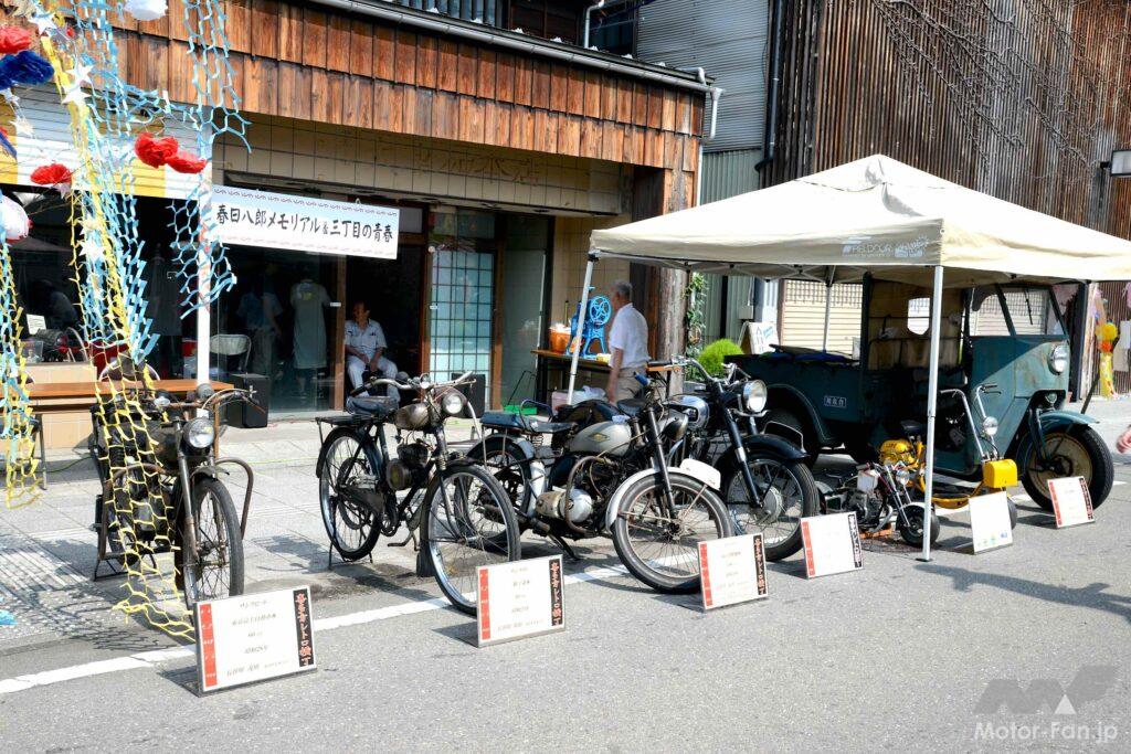 昭和ロマンを感じさせる商店街を歩行者天国して封鎖するとともに、テレビやラジオといった家電のほか生活雑貨などを展示する「テーマ別ミュージアム」、昭和の衣装を身につけてステージに上がる「レトロファッションSHOW」、バナナの叩き売りやガマの油売り、ちんどん屋が練り歩く「伝統の大道芸上演」など、楽しい演出で来場者を楽しませている。その一つとして開催されるのが「レトロモーターShow」なのだ。