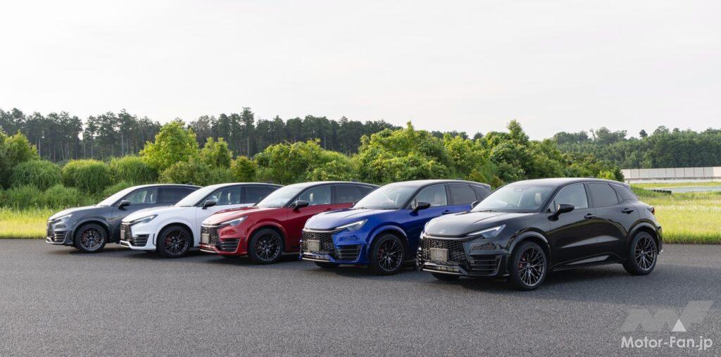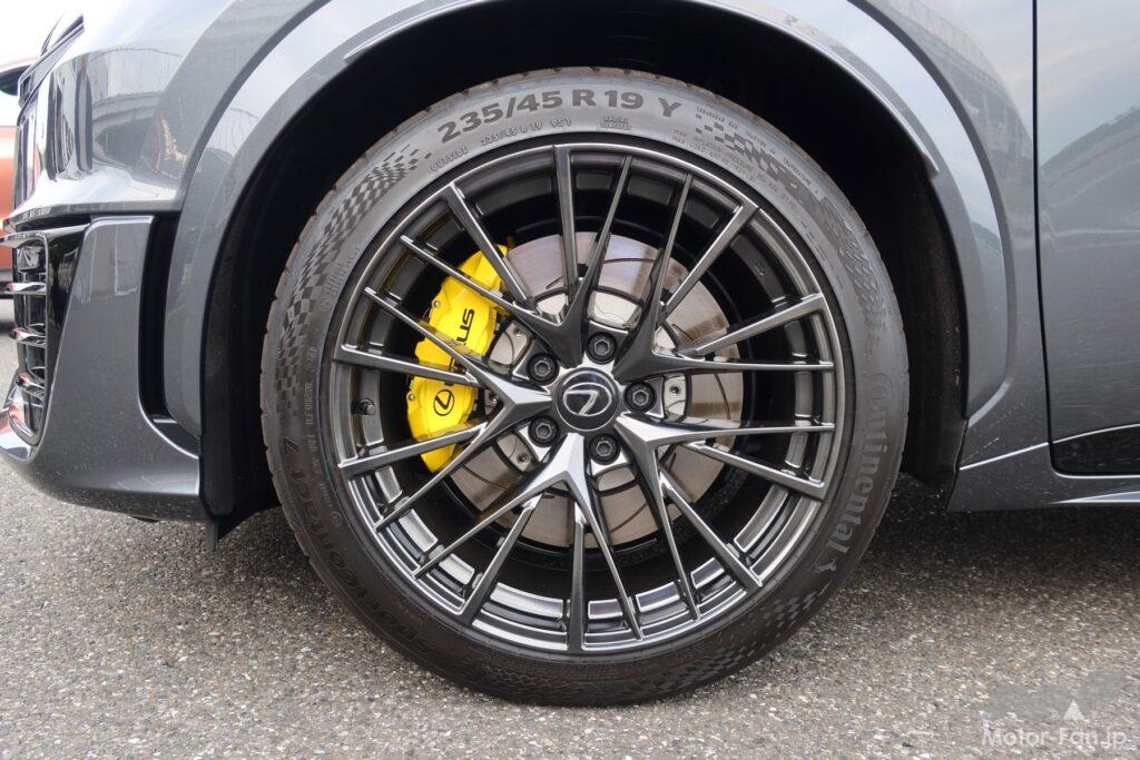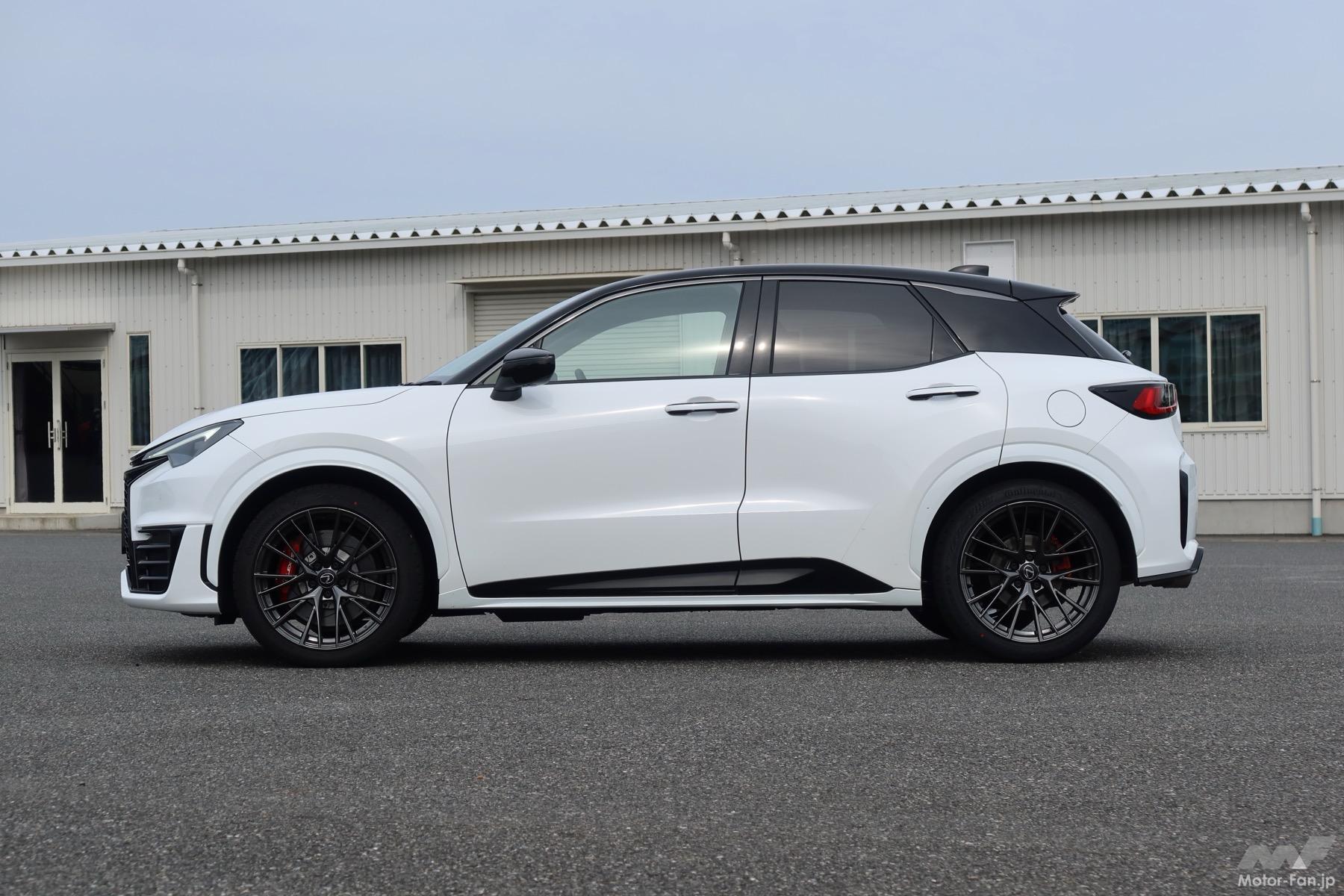 タイヤは235/45R19サイズを装着。ベースのLBXは225/55R18なので、ワンサイズ幅広だ。その幅広タイヤを収めるため、前後フェンダーにアーチモールを追加。全幅はベース車比で15mmアップの1840mmだ。4190mmの全長と2580mmのホイールベースに変更はない。全高は1535mmで、ベース車より10mm低い。タイヤ外径の違いとコイルスプリングで下げている。
