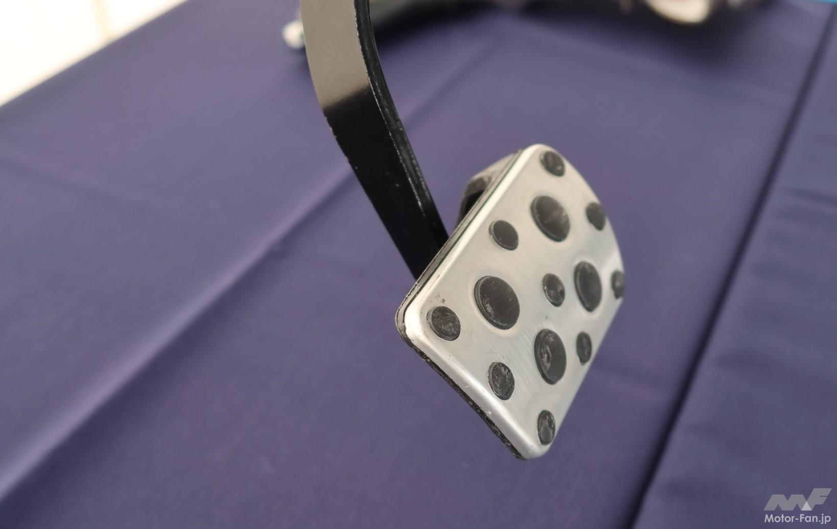 サーキット走行時はブレーキペダルのストロークが長くなる(奥まで踏み込む)。するとペダル踏面が逃げて接触面が減るため、フィーリングが良くないとのフィードバックが(佐々木選手など)評価ドライバーからあった。そこで、パッドの取り付け角をフロアに対して4度寝る方向に変更。深く踏み込んだ際に広い面積で足裏と接触するようにし、フィーリングを向上させた。