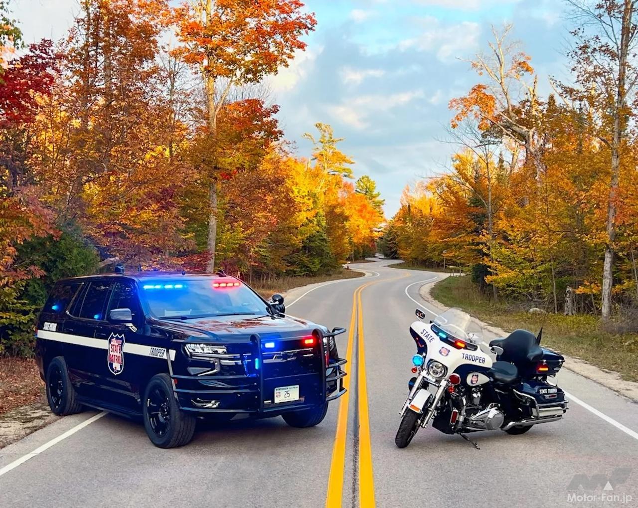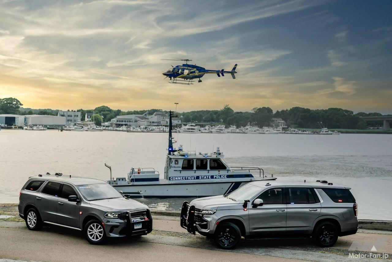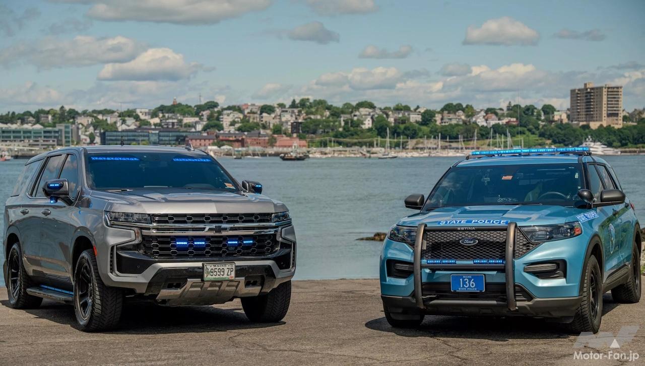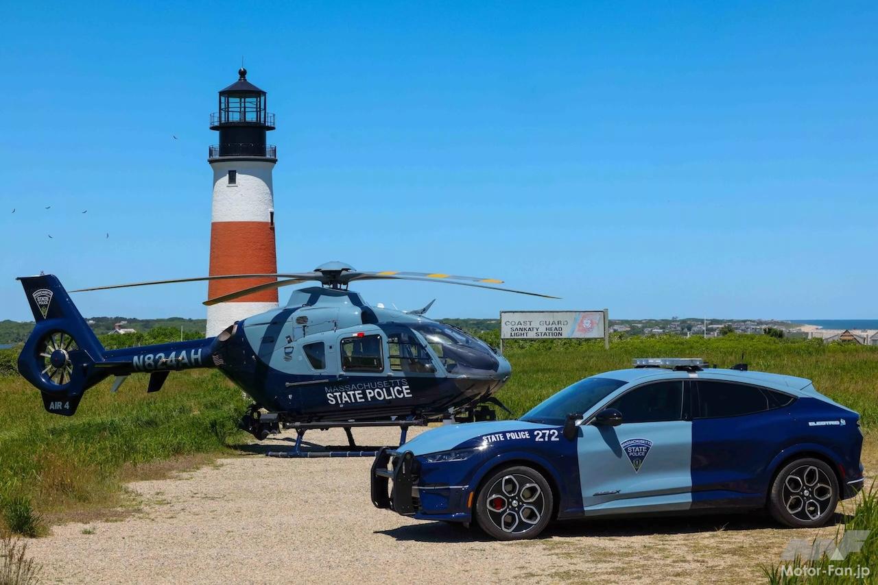 興味深いのは、いくつかの警察署では、ボート、バイク、ヘリコプターを写真撮影に採用していることだ。また、マサチューセッツ州だけが、フルエレクトリックモデルで参戦、ヘリコプターの横にフォード「マスタング マッハE」を誇示している。