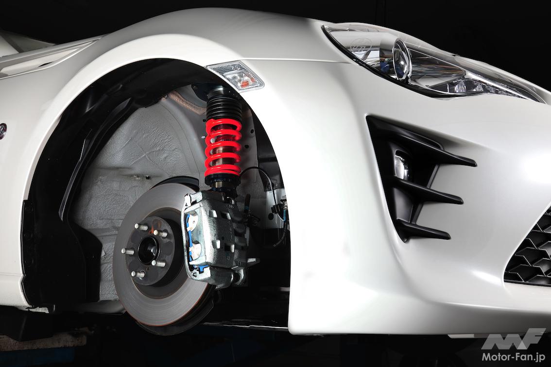 もっとリヤのトラクション性能を高めたいなら、そこはアフターパーツの出番である。リヤのサブフレームマウントをリジッド化して、リヤまわりの挙動遅れを解消。アーム類のブッシュをピロボール化したり、フリクションが少なく適切に減衰力が効いたサスペンションにすることで、リヤのトラクションは稼ぐことができる。また伸び方向のストロークを確保するべく、長いスプリングやヘルパースプリングを使うことでリヤタイヤを路面から離れないようにすれば、全体の挙動をマイルドにすることができる。