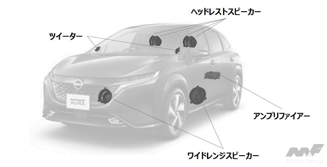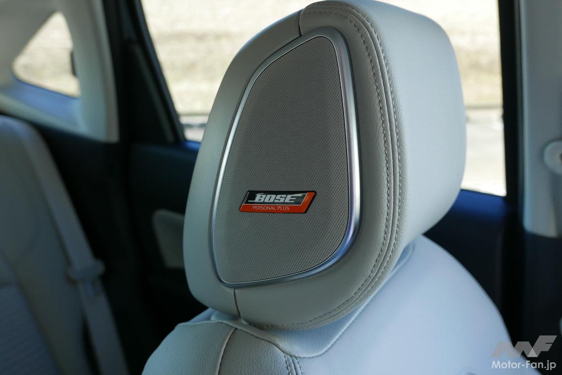 ノート オーラの試乗でもっとも感動したところもお伝えしたい。それはオーディオだ。BOSEパーソナルプラスサウンドシステムという、ヘッドレストスピーカー、ワイドレンジドアスピーカー、ツイーターの8スピーカーに最先端のDSP内蔵アンプという構成のオーディオシステムは、文句なしに「プレミアム」だ。パーソナルスペースコントロール機能でリスナーが音の広がりを調整でき、ライブハウスのようなタイトな感覚から、アリーナの最前列で360°を包まれるようなサウンドまで自在に設定可能。実際に延々と続いた渋滞での走行で聴いた女性ボーカルは、本当に感動できるほど「良い音」だった。運転席だけでなく助手席も同じ音が楽しめるのも素晴らしい。このBOSEパーソナルプラスサウンドシステムがあるからノート オーラを選ぶ、というのもアリだと思うほど、いい。もともとBOSEのサウンドは車内で聴くとき、メリハリがうまく効いていて良い音を奏でてくれる(素人の感想です)が、そのBOSEサウンドでも、このノート オーラが一番良いと感じた。