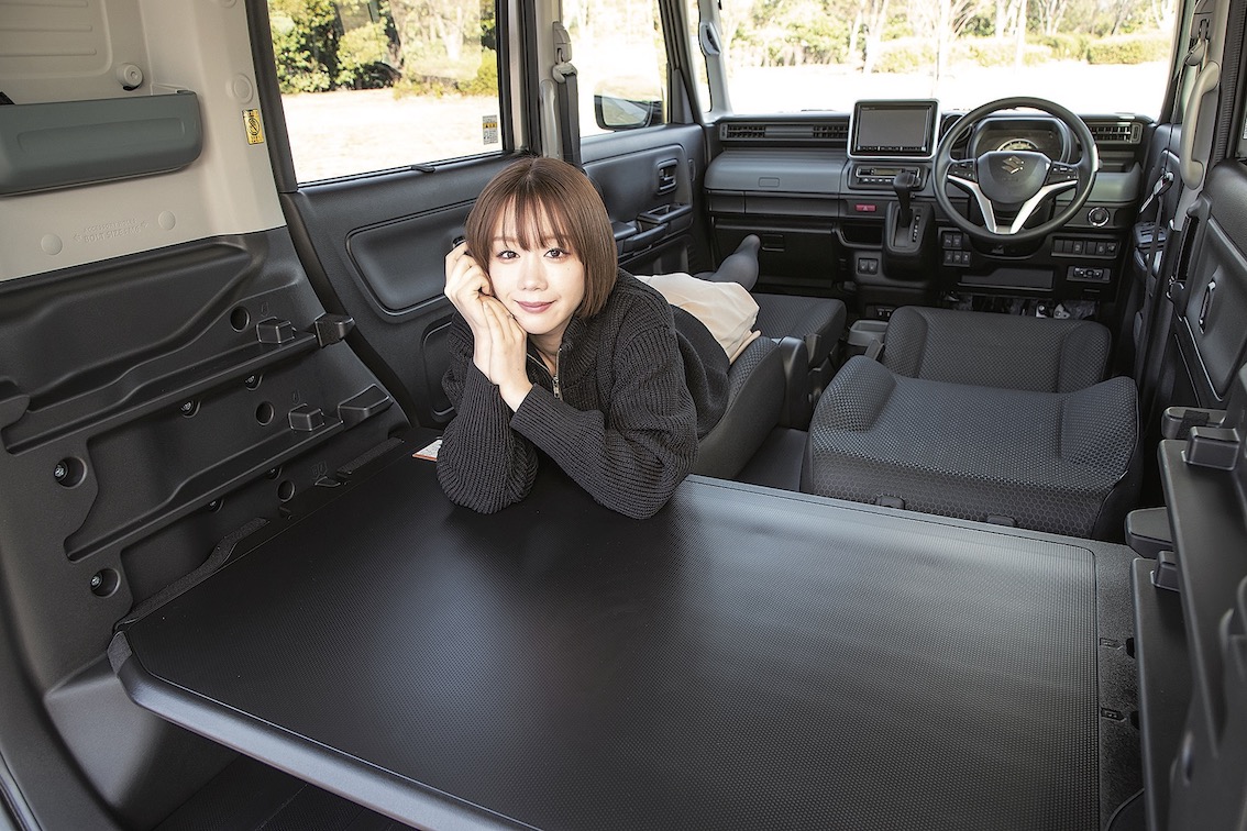 軽商用車ながら、アウトドア、ワーケーション、車中泊などさまざまな一般ユーザーのニーズにも魔法のように応えてくれるのが、スペーシアベースだ。4ナンバー商用車ゆえ前席と荷室優先パッケージで、ベンチのような後席は折り畳み使用前提ながら、それを活かした使い勝手、アレンジ性の自在度は驚くばかり。