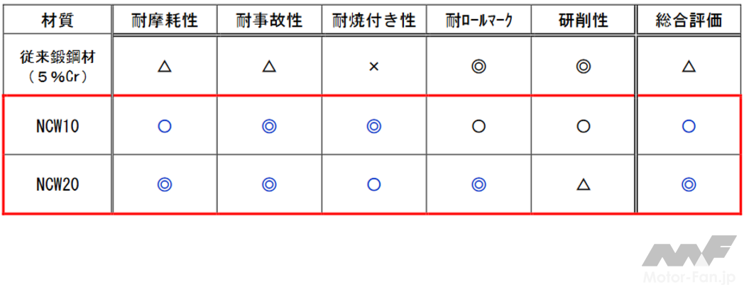 NCW10 ・・・ 遠心鋳造製複合ロール