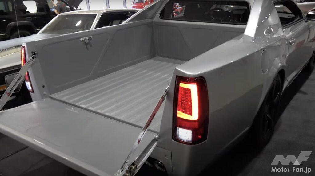まずドナー車両のリヤエンドを切り落とし、リアオーバーハングをストレッチ、リアベッドを収容した。リヤフェンダーは、カマロの工場出荷時のボディワークのシャープな表面を模倣し、リヤセクションには垂直のLEDテールライトが装備されている。