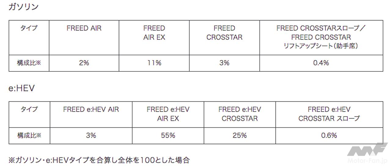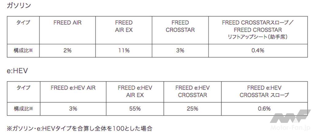 最も人気を集める「フリードe:HEVエアーEX」が全体の55%、