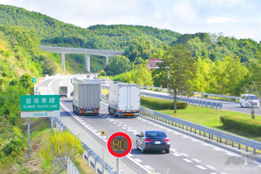 車両総重量8t以上の貨物車両は、2024年4月1日から高速道路の法定速度が90kmに引き上げられている。