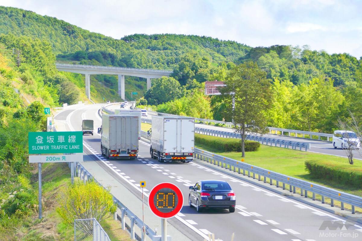 車両総重量8t以上の貨物車両は、2024年4月1日から高速道路の法定速度が90kmに引き上げられている。