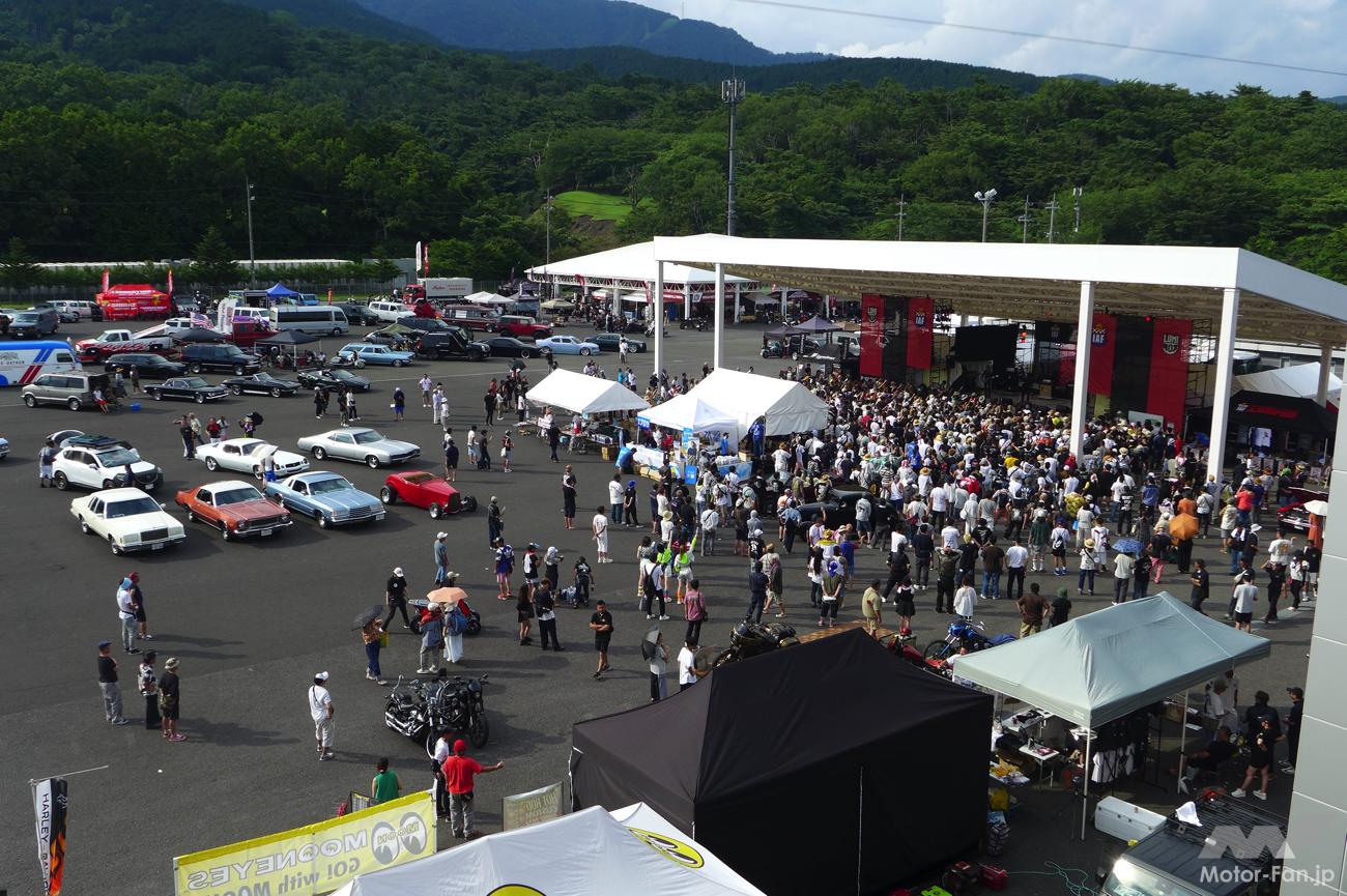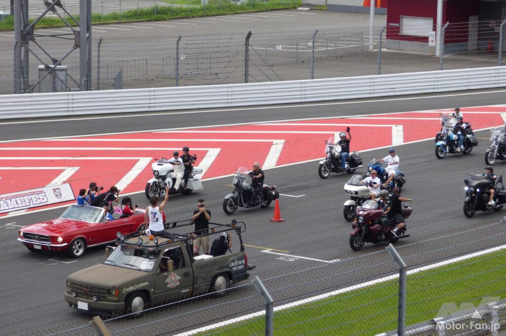 今回のIAFではカーショーやモーターサイクルショーのほか、本コースを使ってのドラッグレース、エントリー車によるパレードラン、ヒストリックカーレースなどが開催され、メインステージではIKURA&Funkeestyle、横浜銀蝿によるライブが開催された。