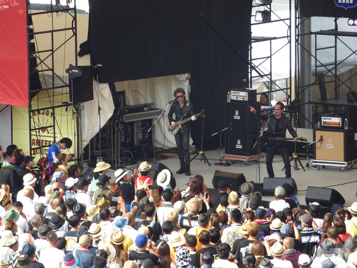 メインステージ開催されたIKURA&Funkeestyleや横浜銀蝿によるライブに観客は大いに盛り上がる。クルマやバイクだけでなく、音楽もIAFの魅力のひとつ。